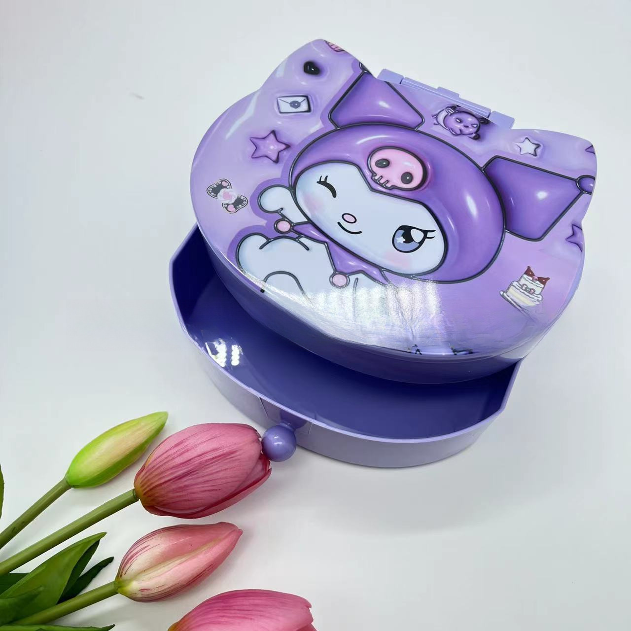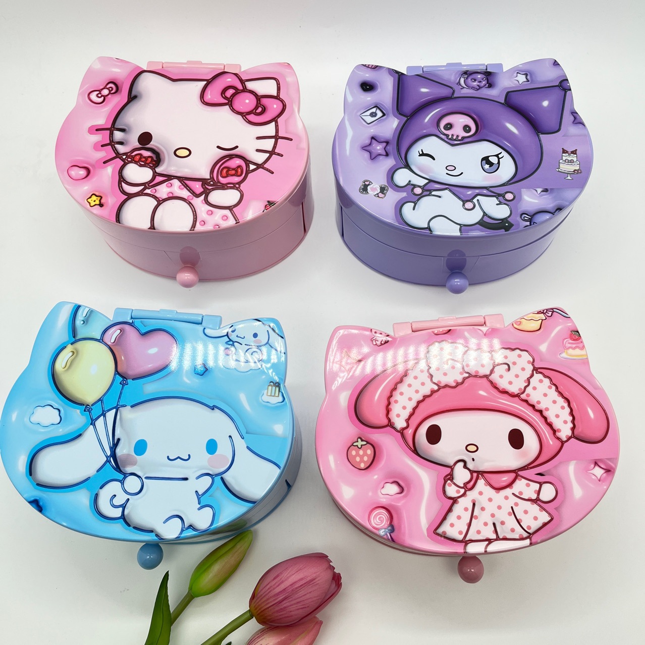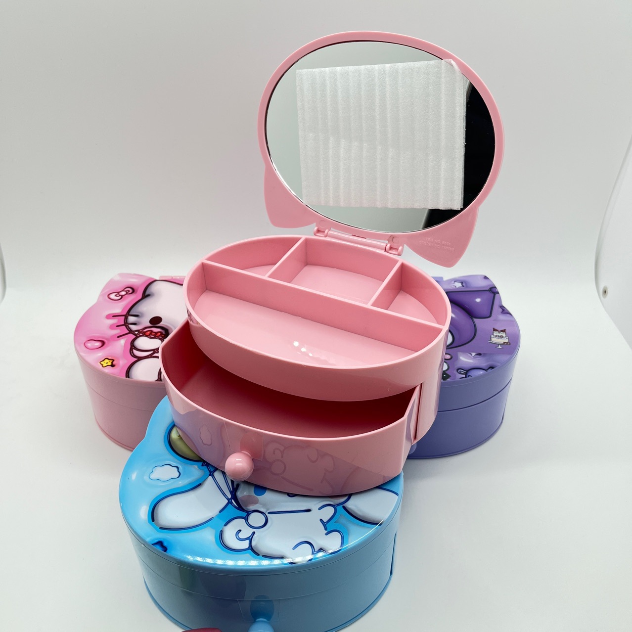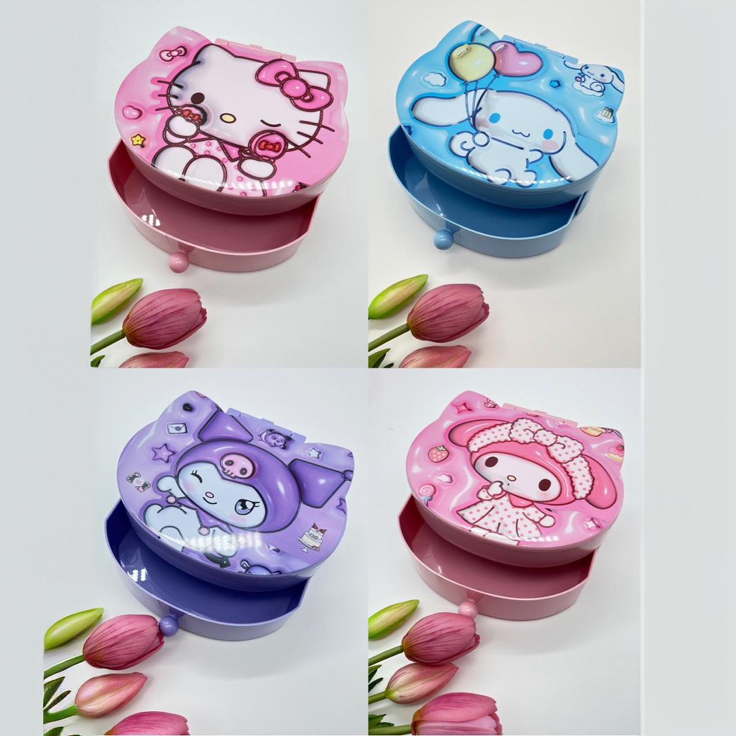 Главная страница > 卡通家族化妆镜收纳盒二合一库洛米KT猫美乐蒂狗抽屉饰品盒