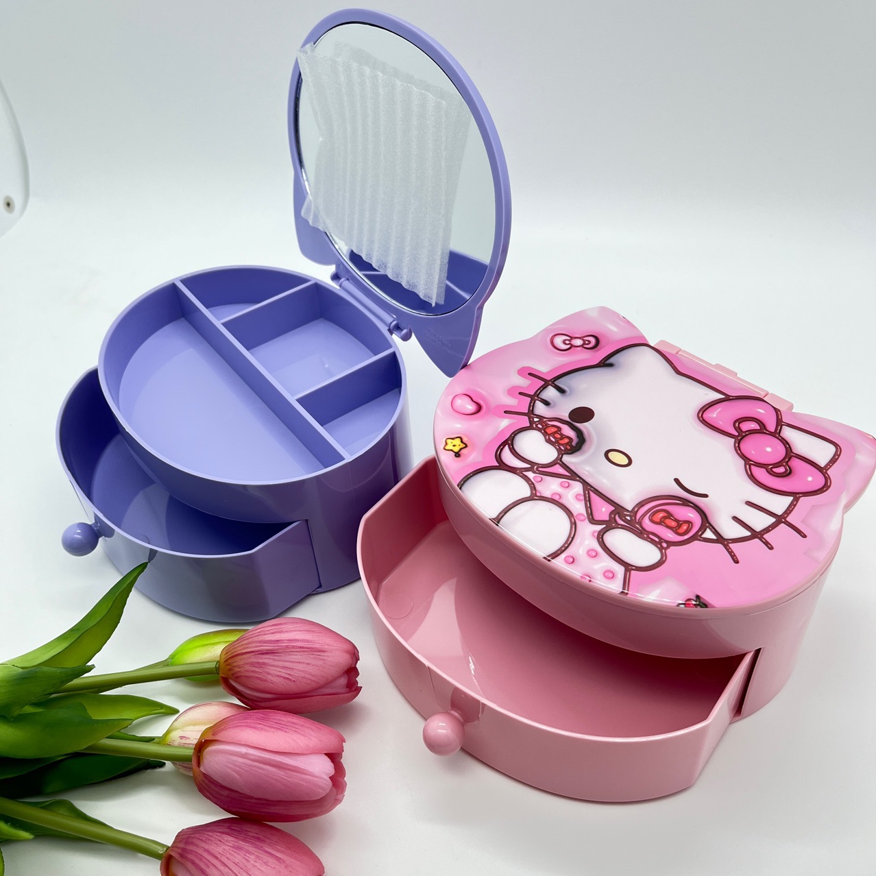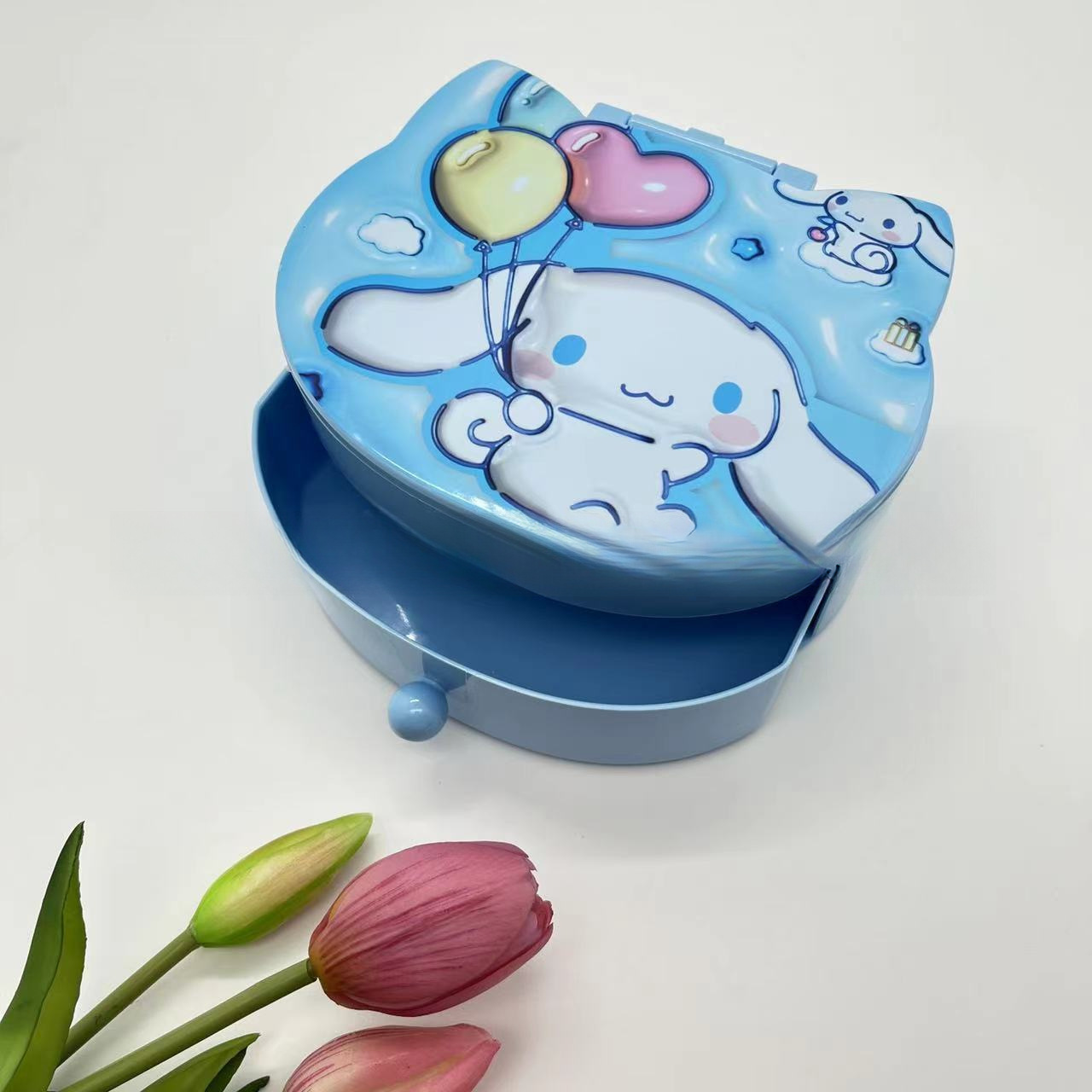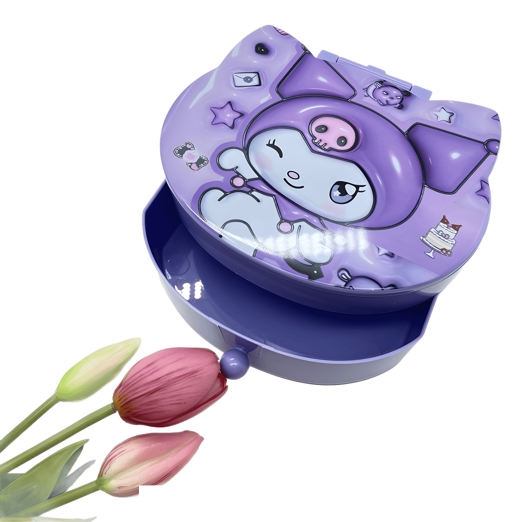 Главная страница > 卡通家族化妆镜收纳盒二合一库洛米KT猫美乐蒂狗抽屉饰品盒
