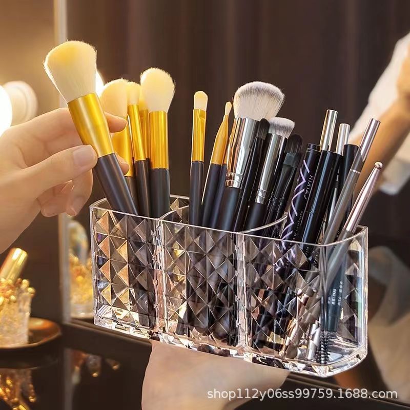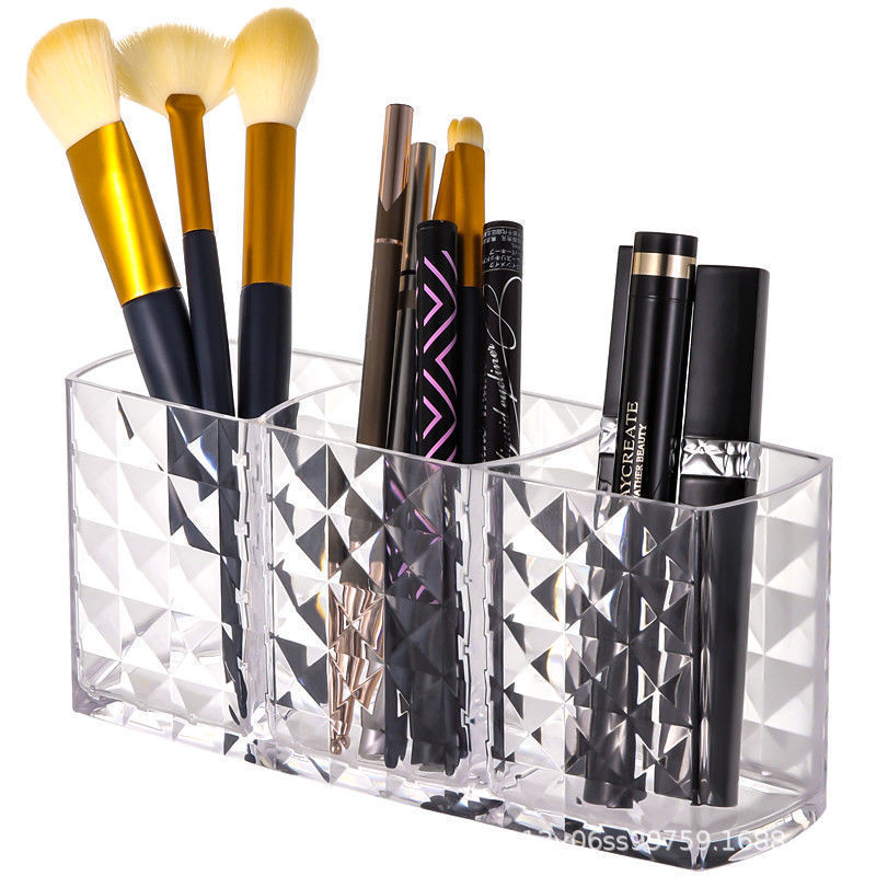 Главная страница > Акриловый трехсекционный ромбовидный узор, прозрачный держатель для ручек, ящик для хранения кистей для макияжа, креативный персонализированный настольный ящик для хранения карандашей для бровей, помады