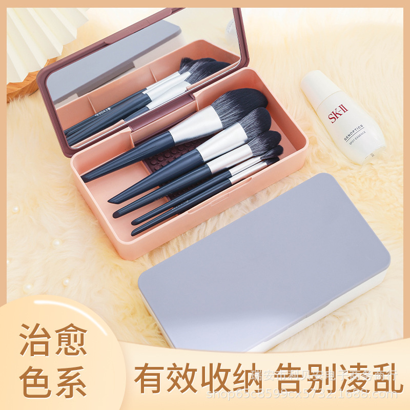 Креативная коробка для хранения кистей для макияжа с зеркалом, пылезащитная коробка для кистей для теней с крышкой, стеллаж для хранения кистей для карандашей для бровей