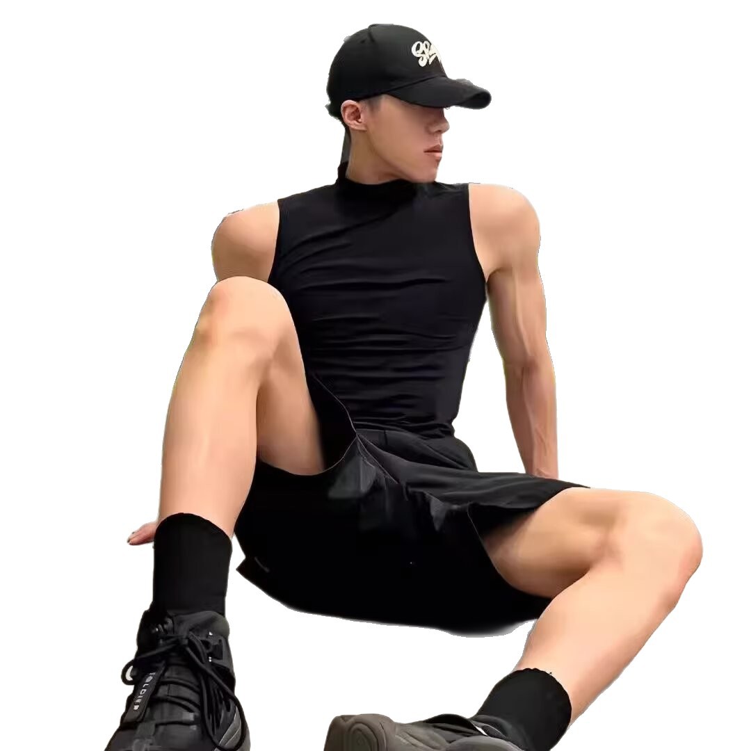 Главная страница > Сплошной цветной жилет с половиной высоким воротником, мужской плотный спортивный жилет, мужская рубашка со средним воротником для фитнеса, футболка без рукавов с широкими плечами и воротником-стойкой