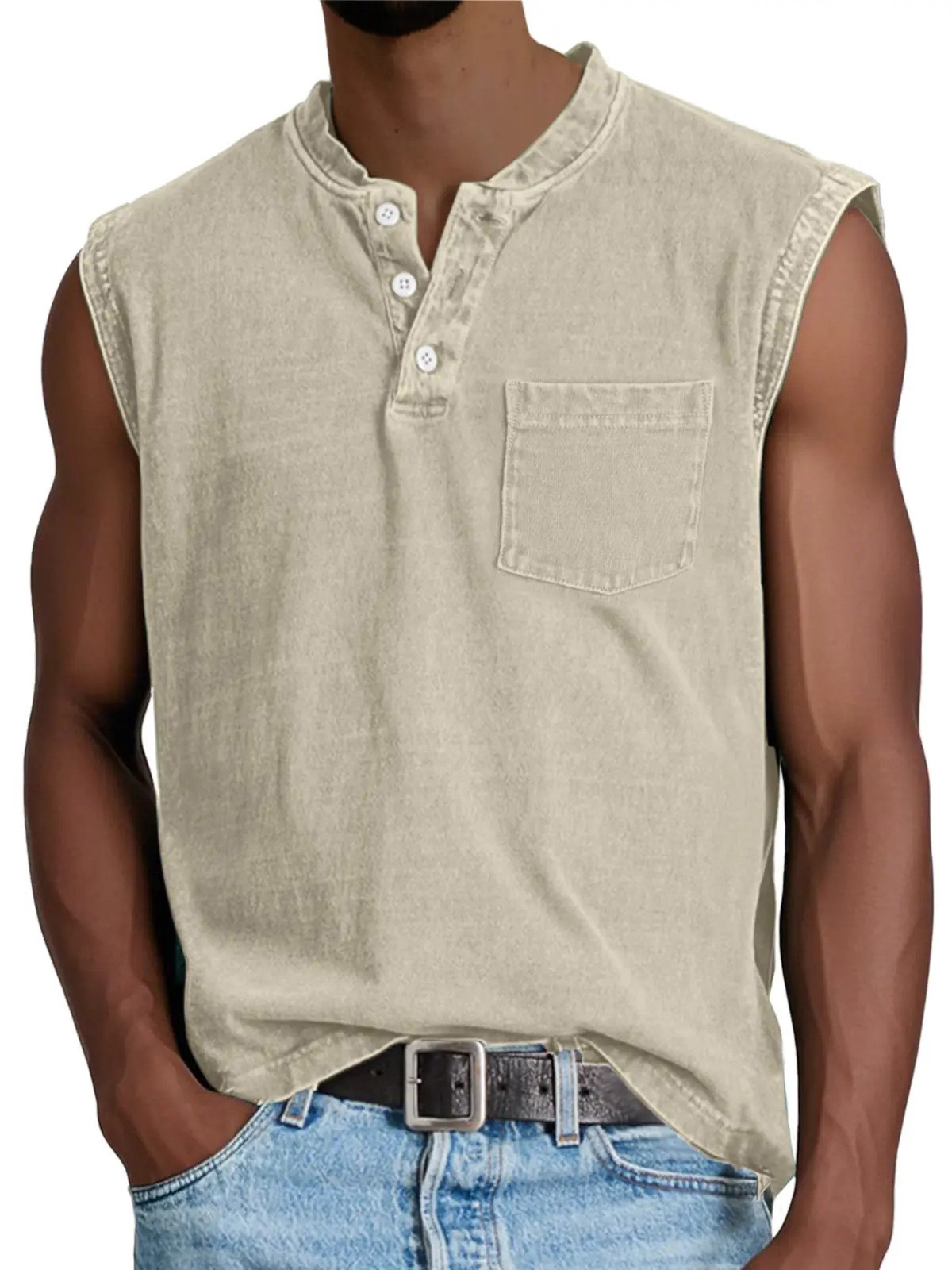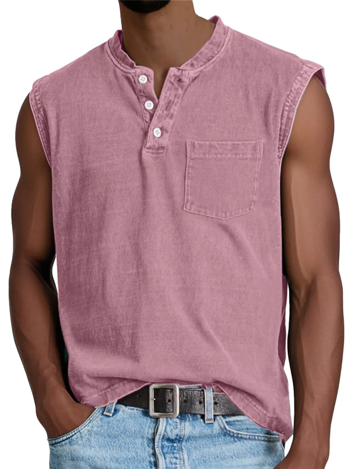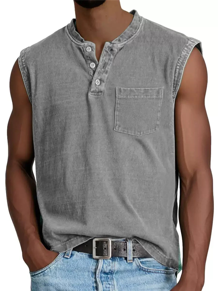 Главная страница > Мужская тонкая майка-безрукавка с воротником-хенли на пуговицах для фитнеса и спорта, модель 2025 года, европейско-американский стиль, для трансграничной торговли, Amazon