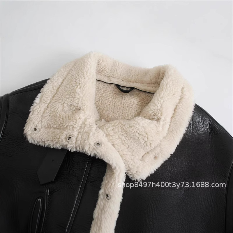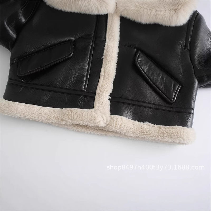 Главная страница > Внешняя торговля оптом 2024 новый женский европейский и американский стиль уличной моды утолщение флисовой кожаной куртки