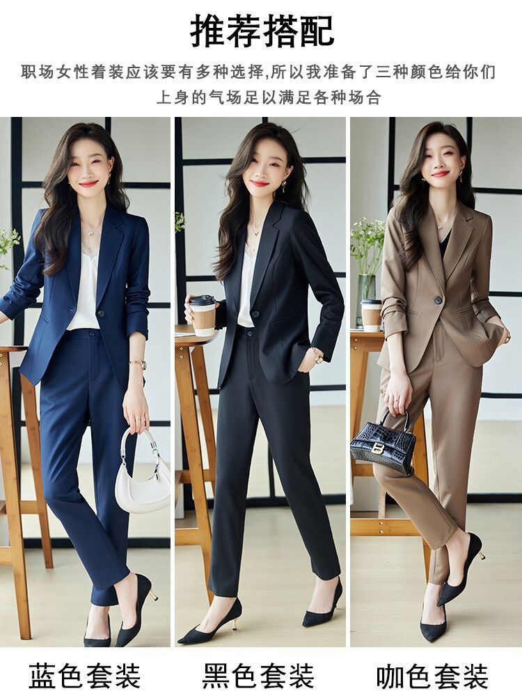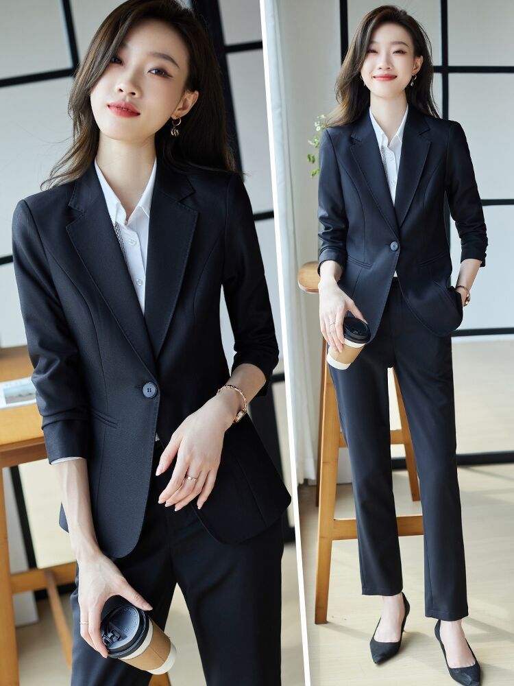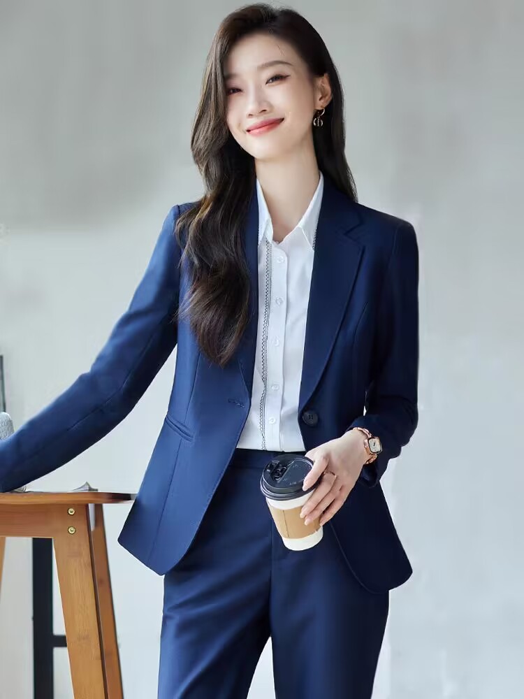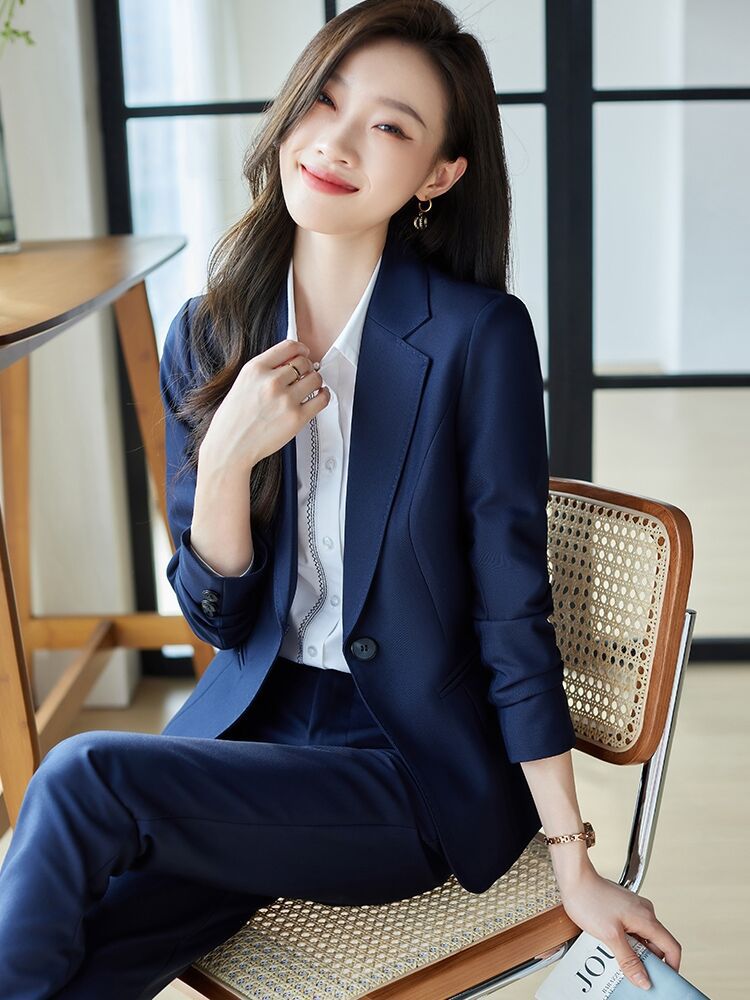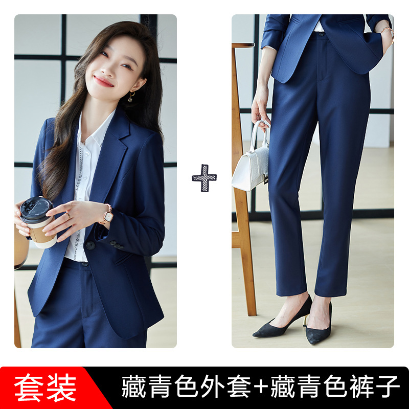 Главная страница > Темно-синий женский костюм 2024, новинка весны и осени, маленькая элегантная женская куртка, профессиональная официальная рабочая одежда