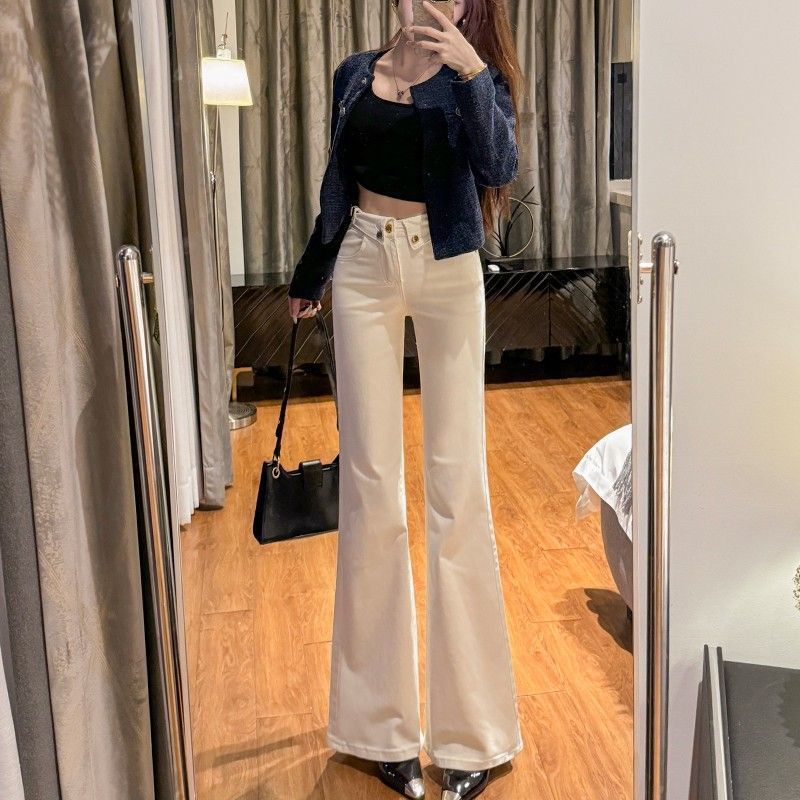 Главная страница > Shanli Dadi белые джинсы с высокой талией для женщин на осень и зиму, новые эластичные свободные драпированные расклешенные брюки в корейском стиле
