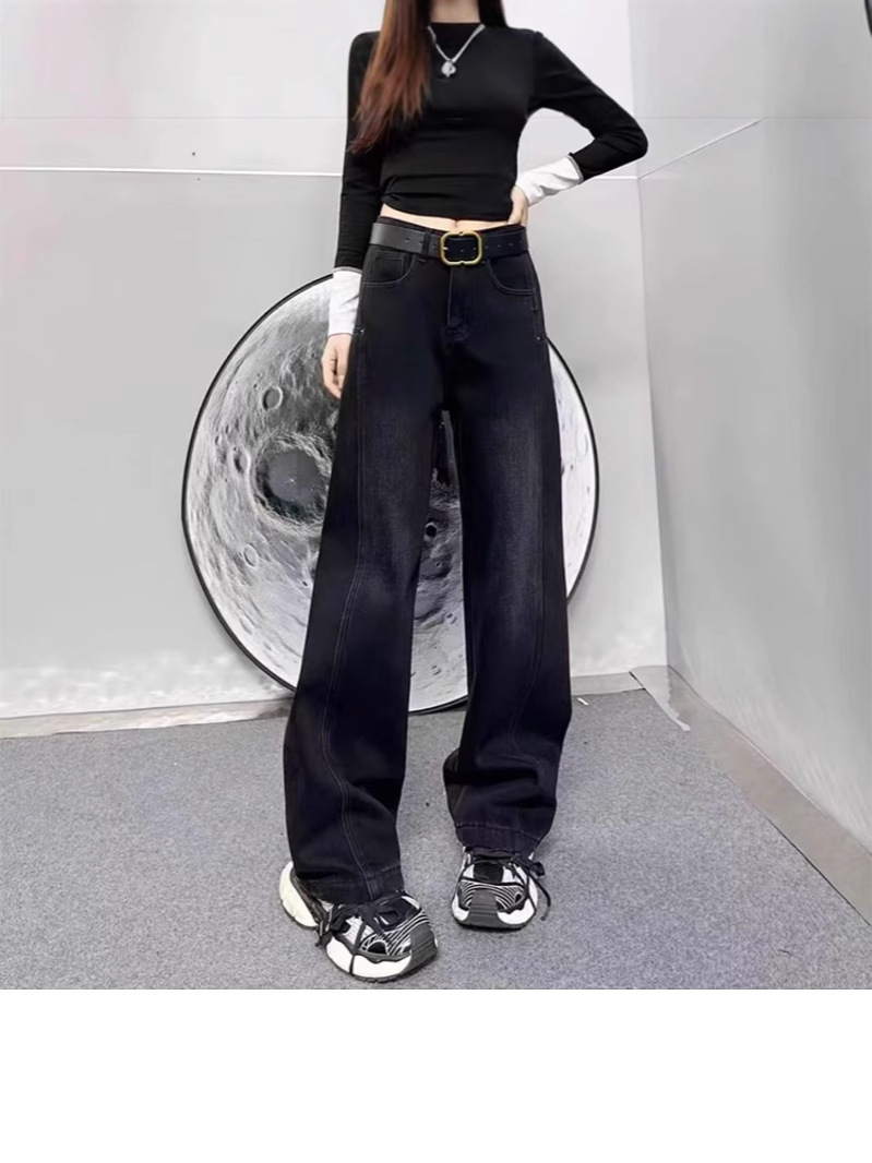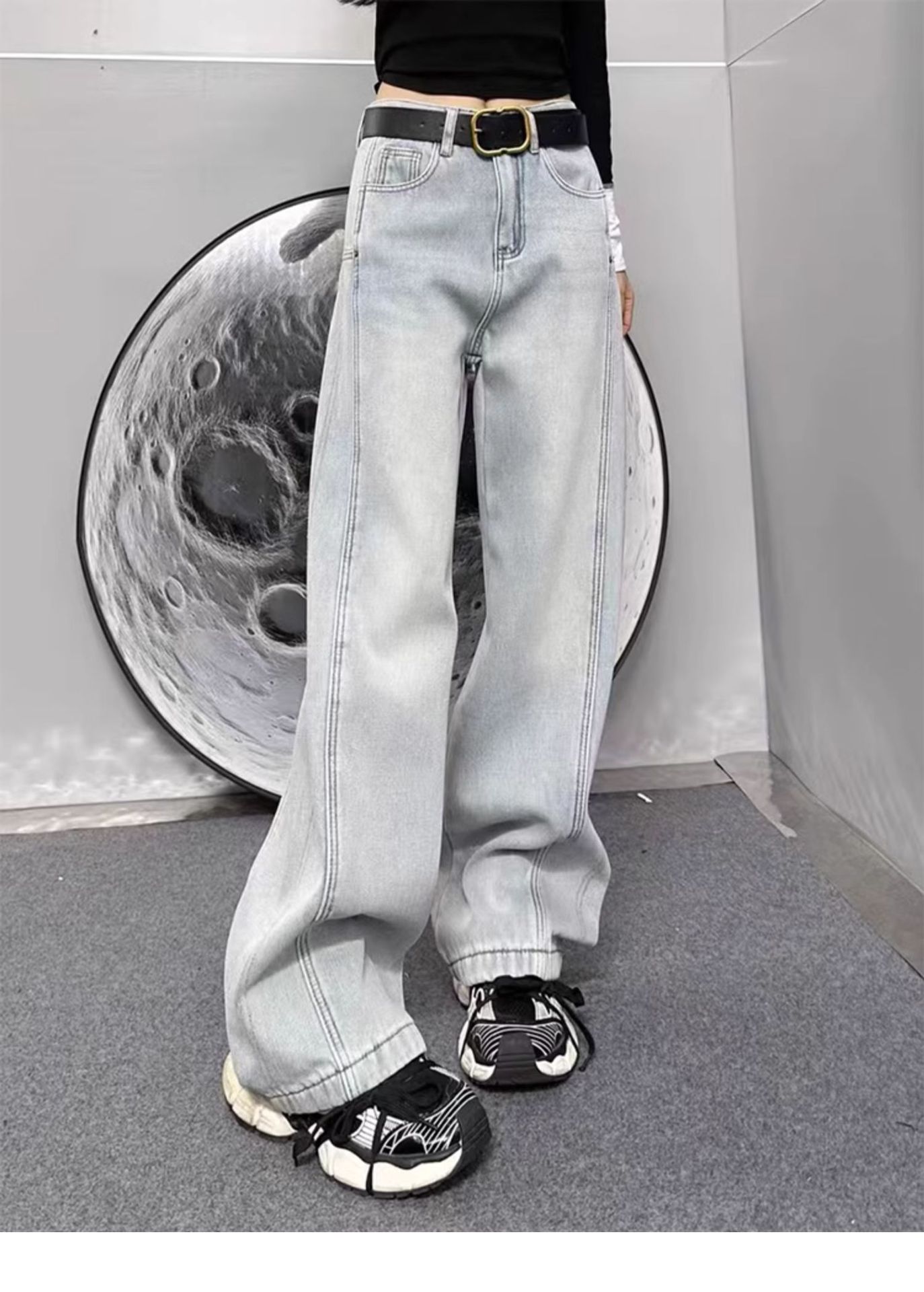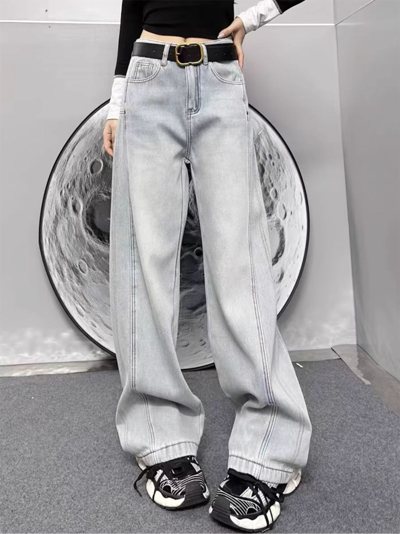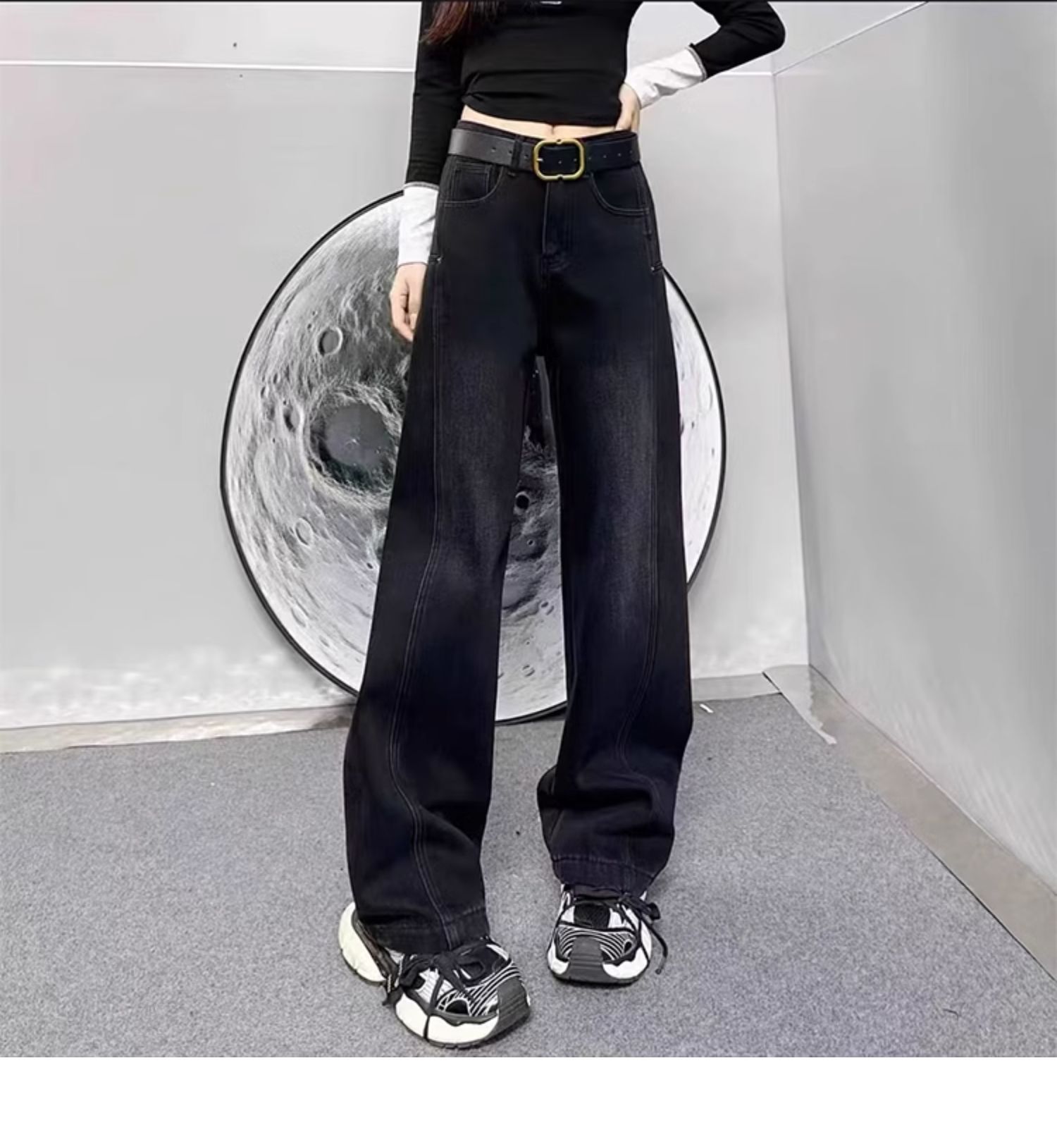 Главная страница > Джинсы прямого кроя в стиле ретро для женщин больших размеров, весна-осень 2025, свободные широкие брюки с высокой талией для фигуры типа «груша»