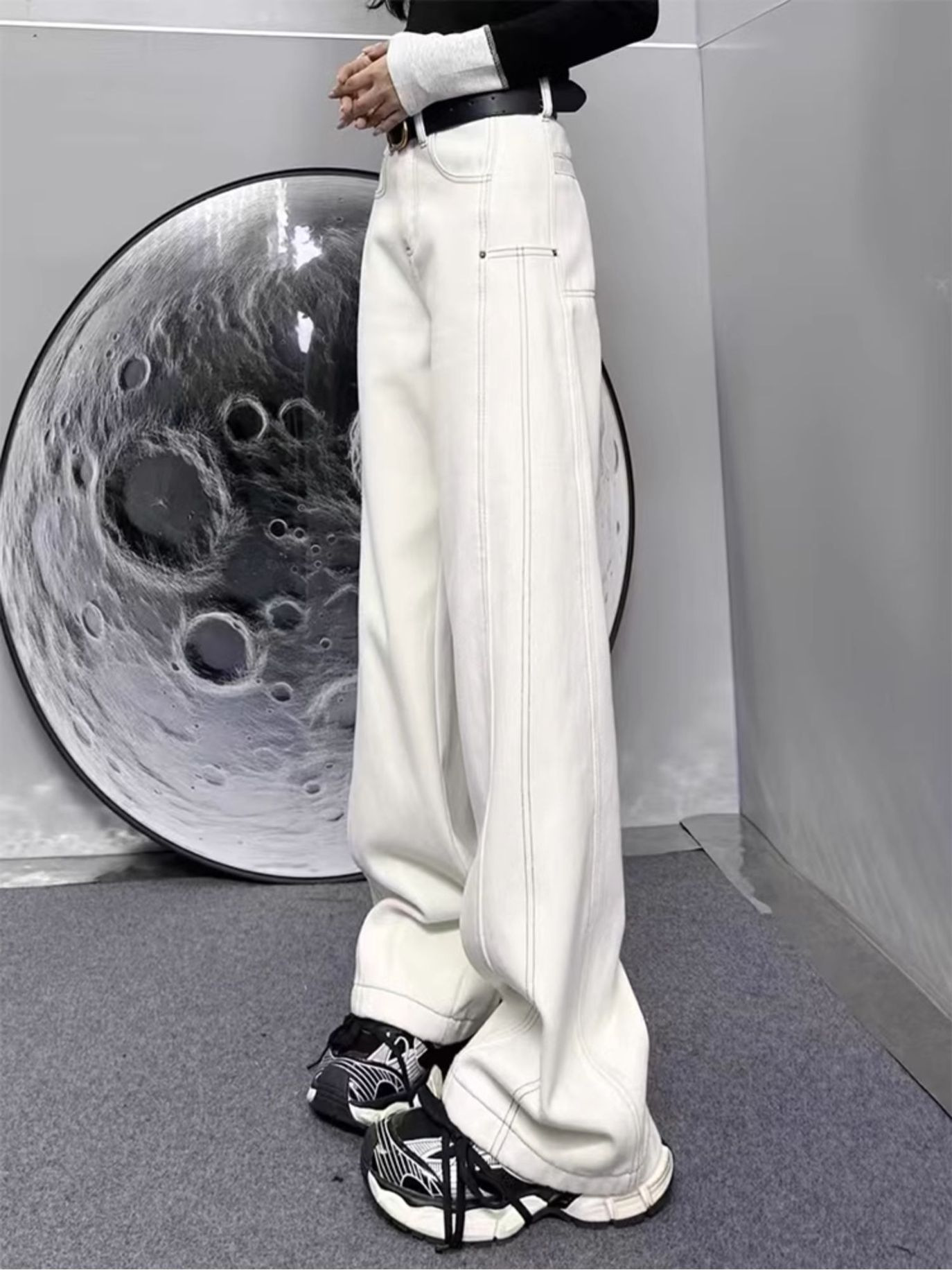 Джинсы прямого кроя в стиле ретро для женщин больших размеров, весна-осень 2025, свободные широкие брюки с высокой талией для фигуры типа «груша»