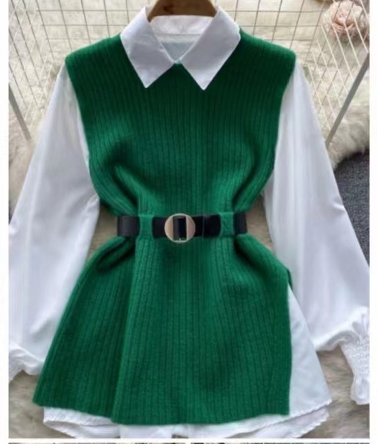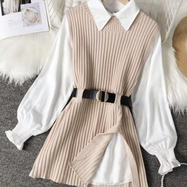 Главная страница > Женский костюм весна 2025, корейский стиль, приталенный, средней длины, рубашка, жилет на завязках, трикотажный, комплект из двух предметов