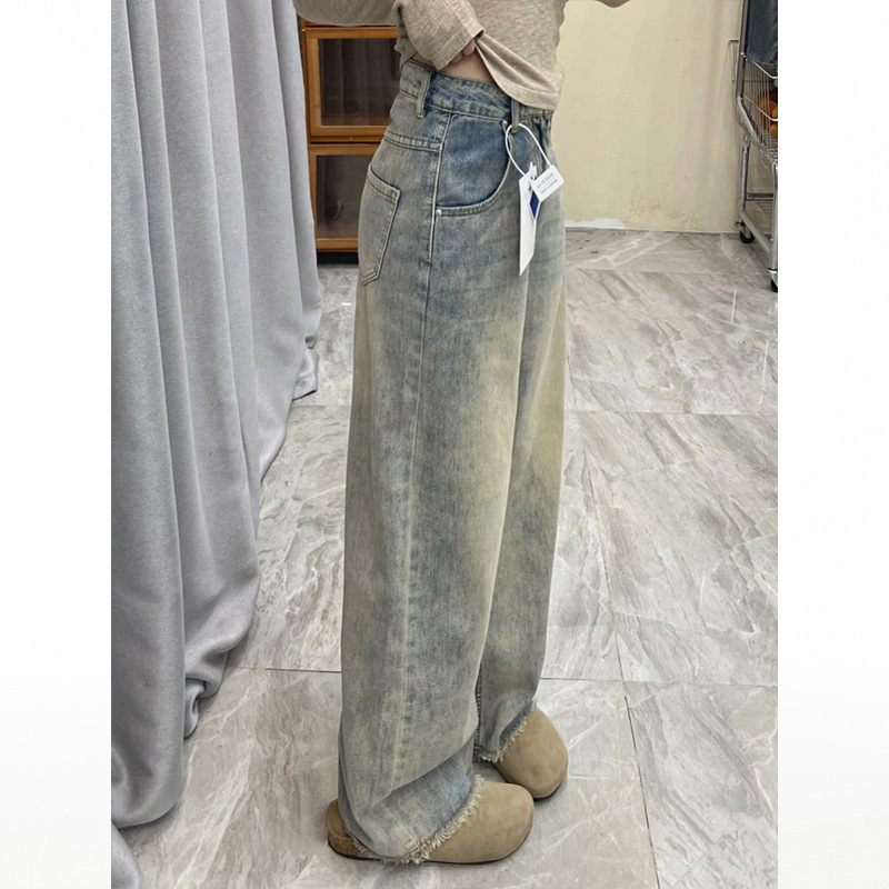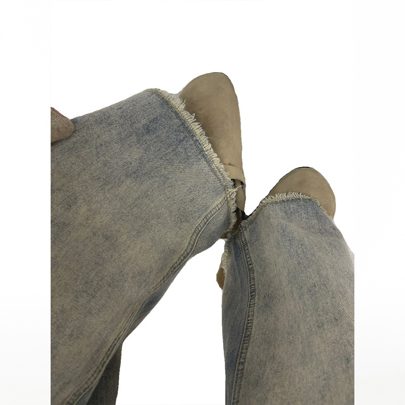 Главная страница > Прямые джинсы с широкими ножками для детей весной новая высокая талия свободная и вертикальная окантка