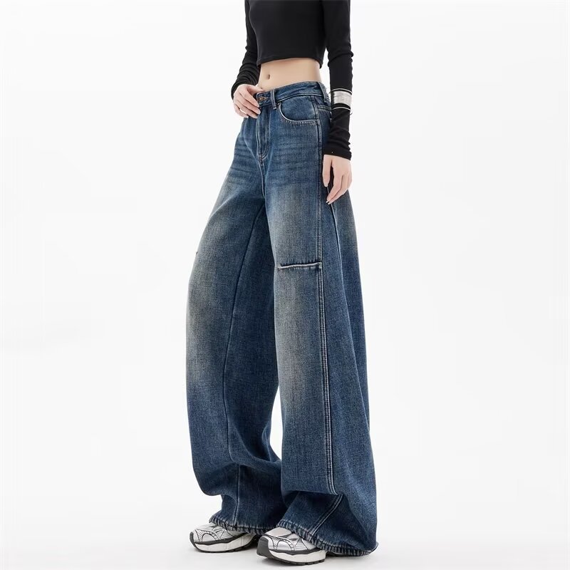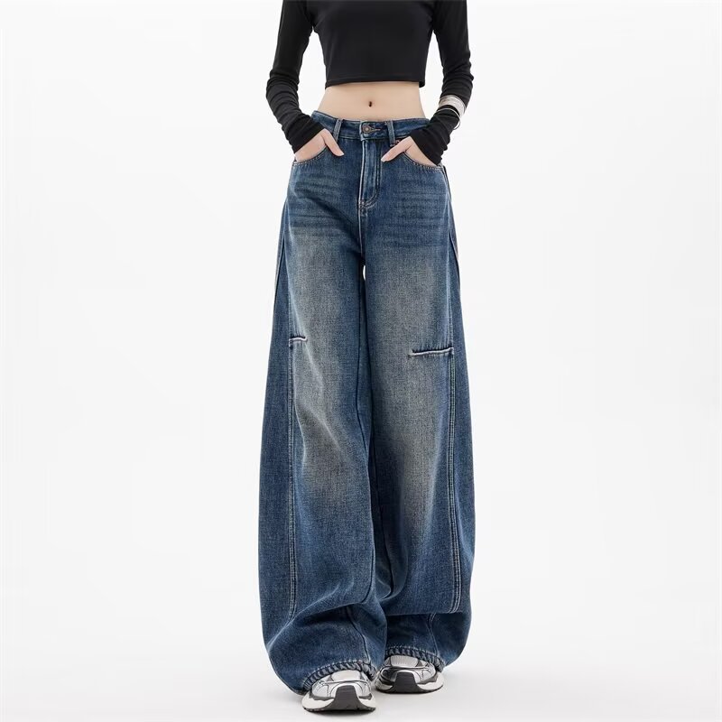 Главная страница > Винтажные синие джинсы Scimitar для женщин, весенний американский стиль, новинка 2025 года, свободные широкие брюки длиной до пола, большие размеры Scythe.