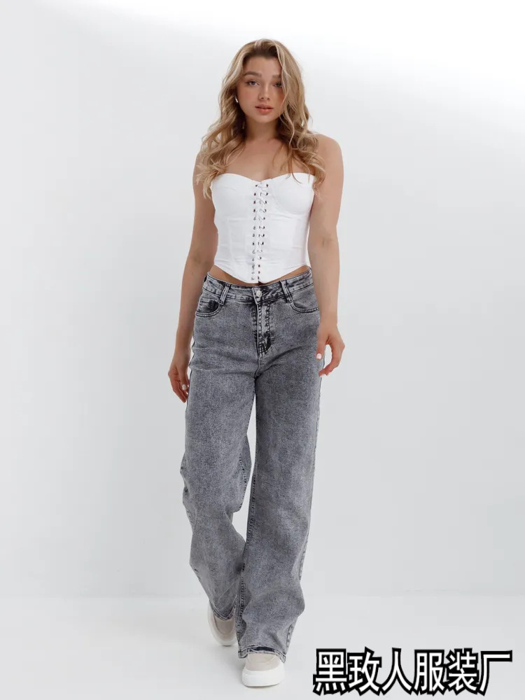 Главная страница > Женские джинсы для трансграничной внешней торговли 2025, новые широкие брюки, женские американские джинсы с высокой талией, европейские и американские джинсы