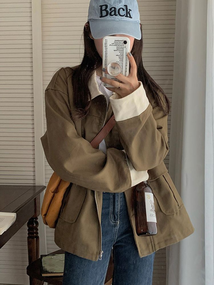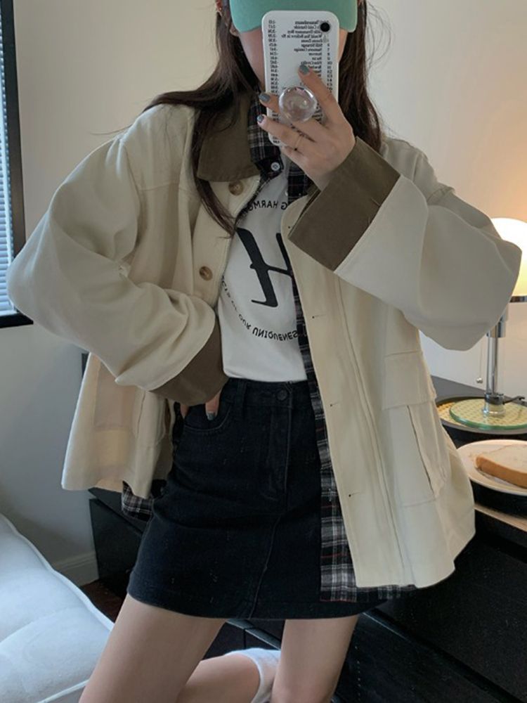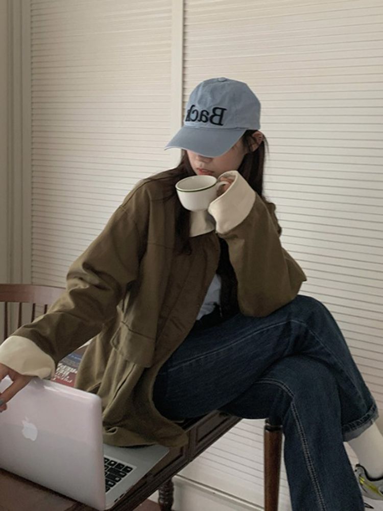 Главная страница > Женские топы с длинными рукавами, дизайн нишевый ретро 2025, комбинированные, новая осенняя куртка, свободный крой, корейский стиль