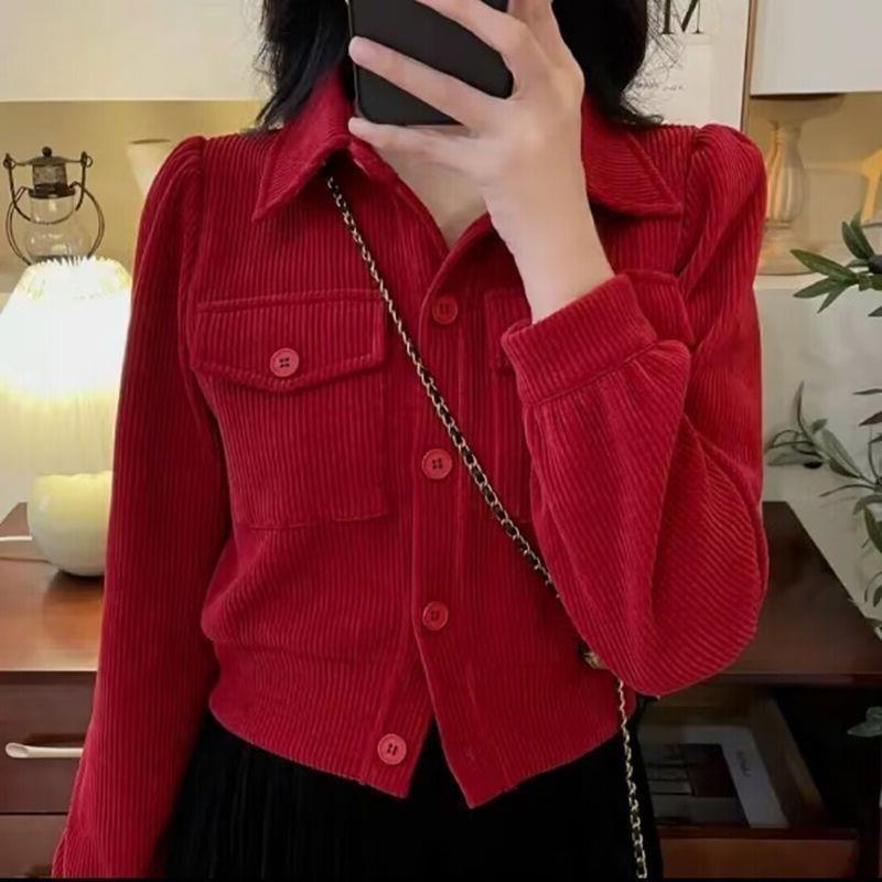 Главная страница > Вельветовая куртка женская весна 2023 новая утолщенная Ретро рубашка с длинным рукавом осенне-зимняя куртка в Корейском стиле короткий топ