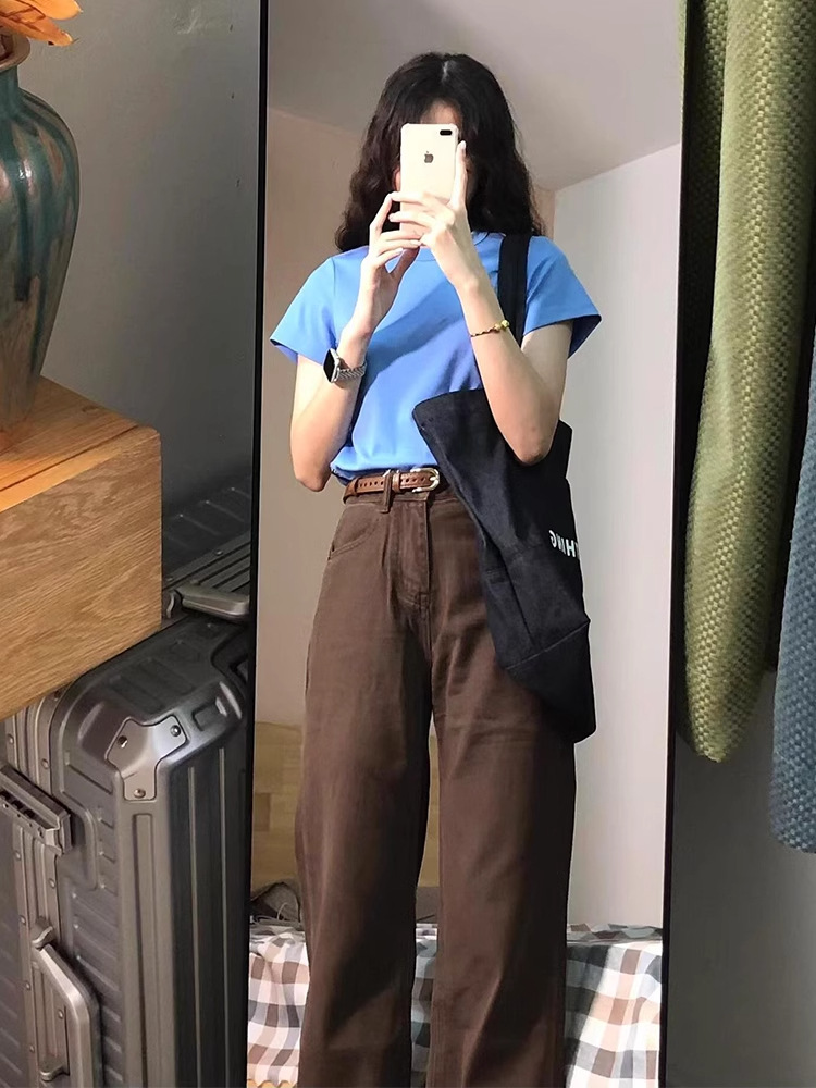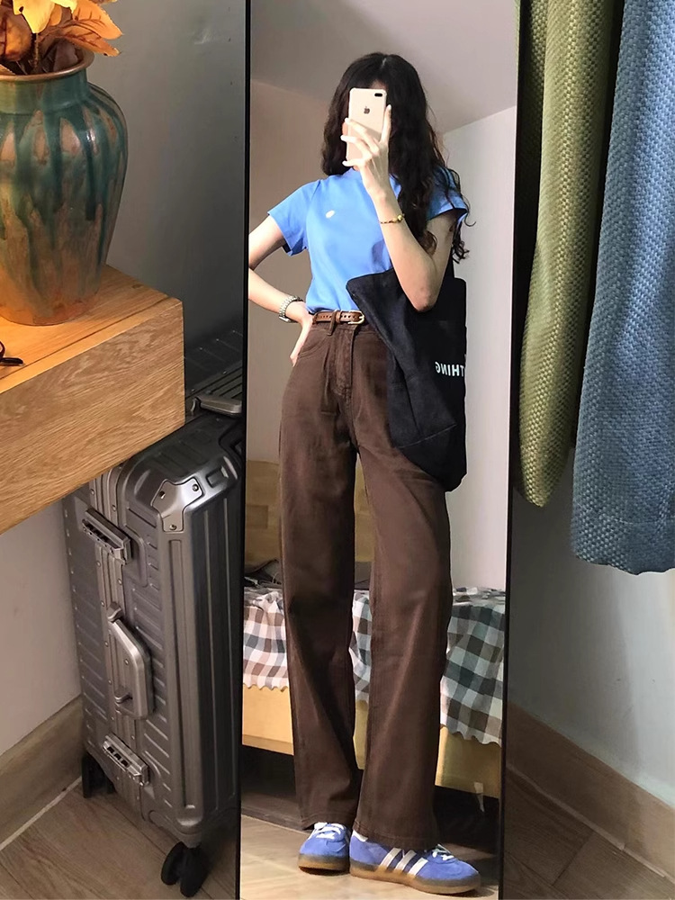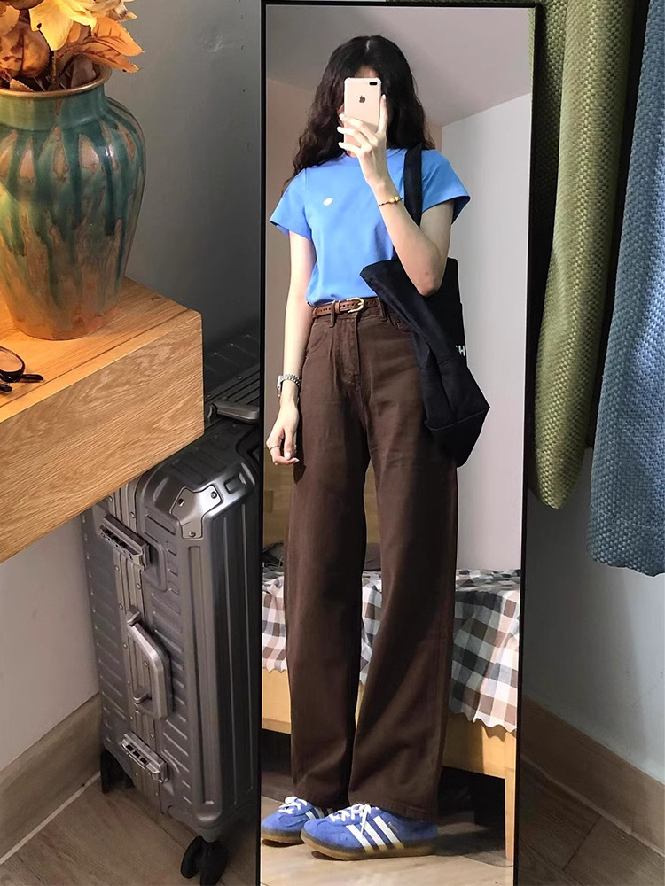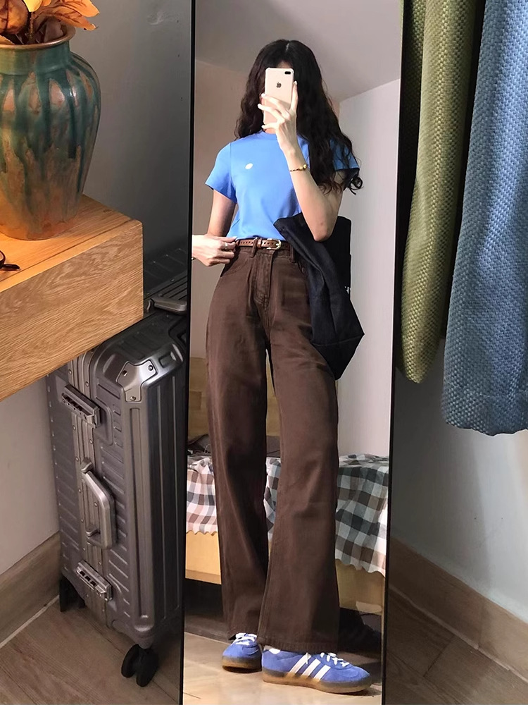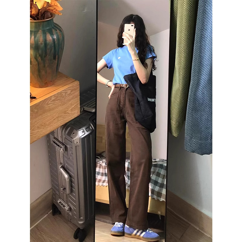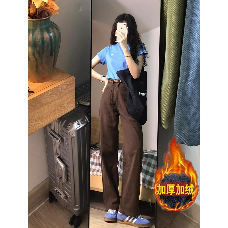 Главная страница > Прямые женские джинсы Maillard кофейного цвета, новый весенний стиль, большие размеры, с высокой талией, облегающие, свободные, широкие брюки, закрывающие бедра.