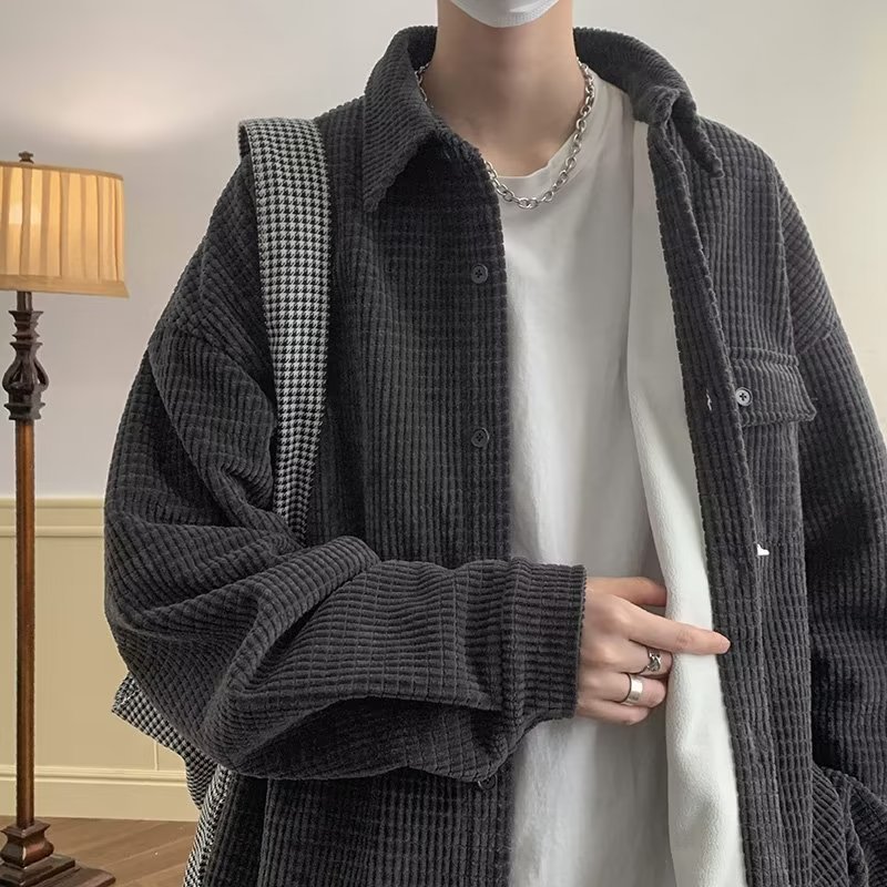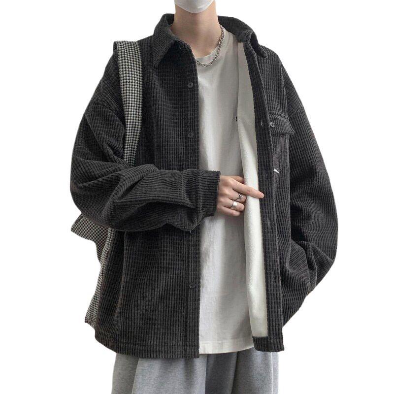 Главная страница > Вельветовая черная рубашка мужская плюшевая утолщеная теплая куртка зимой красивая повседневная ретро рубашка