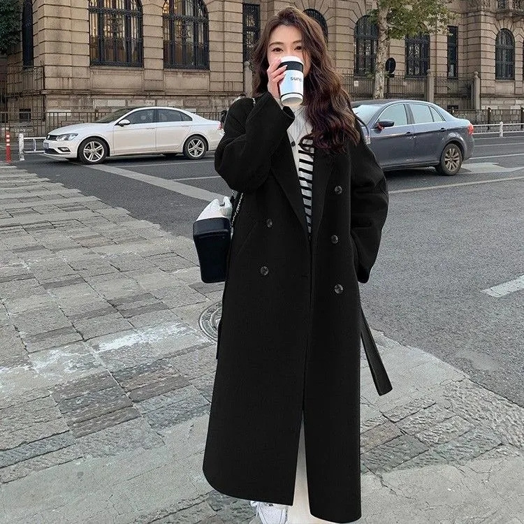 Главная страница > Осенние и зимние новые тенденции корейские шерстяные пальто женские свободные средние и длинные студенческие плащи женские пальто