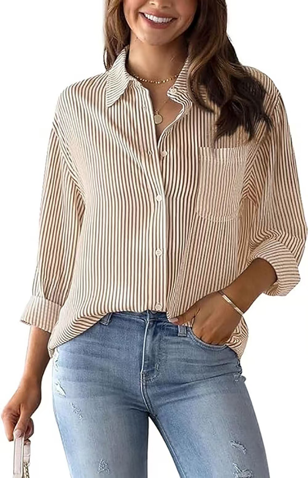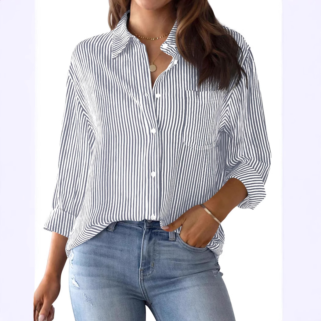 Главная страница > 2024 Amazon внешняя торговля трансграничная осень новый принт в полоску кардиган топ повседневная мода с длинными рукавами рубашка женщина