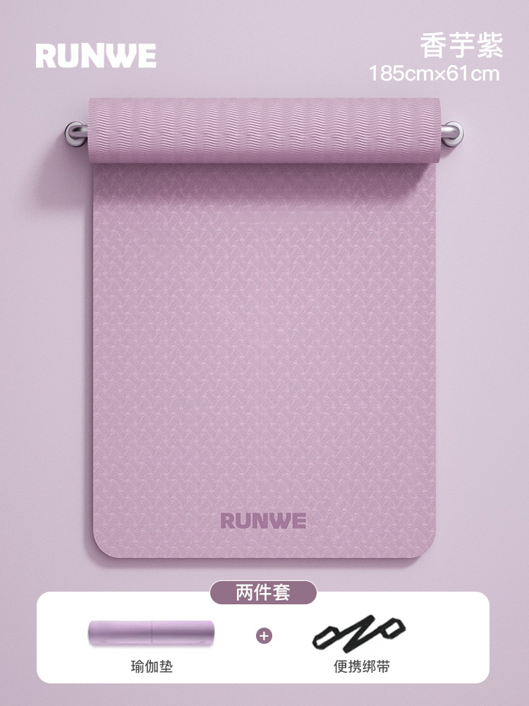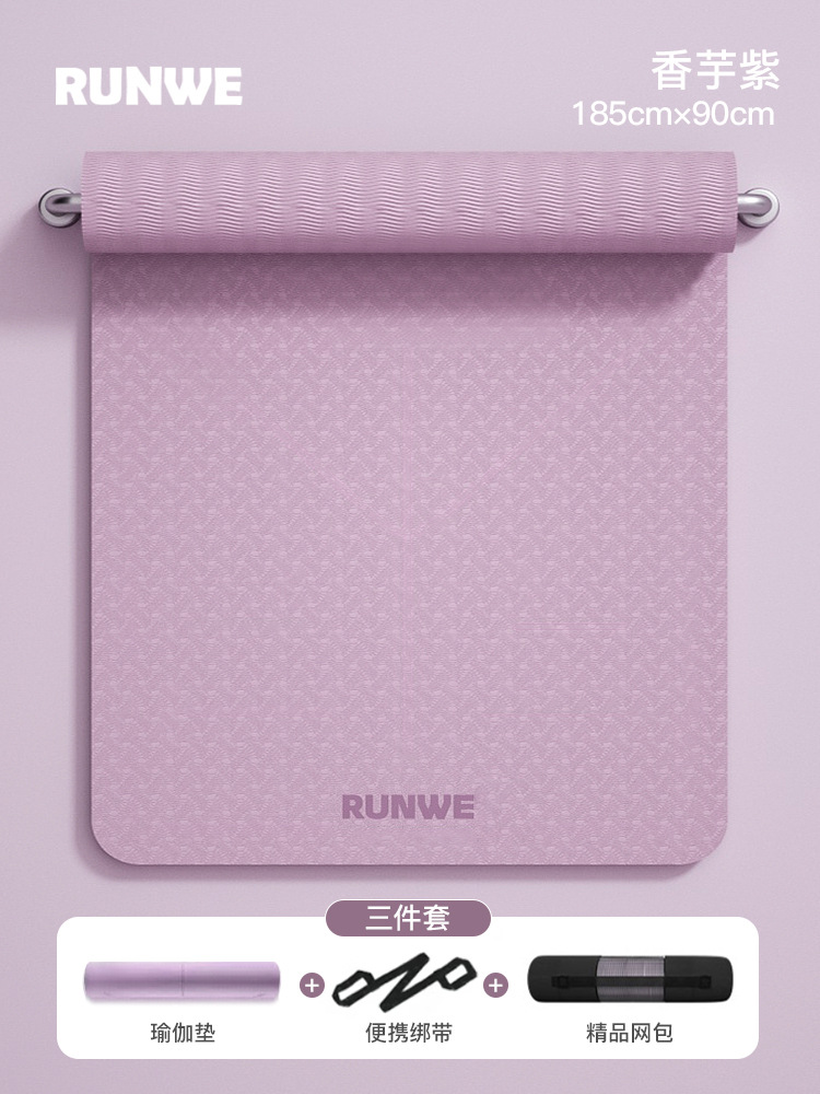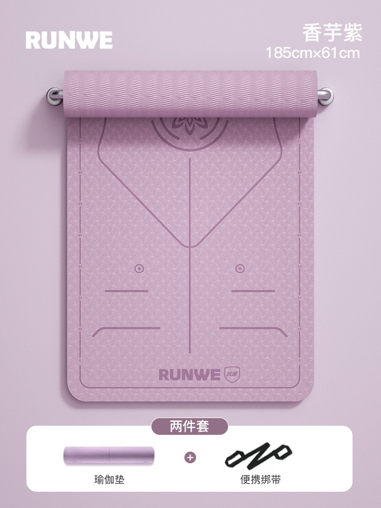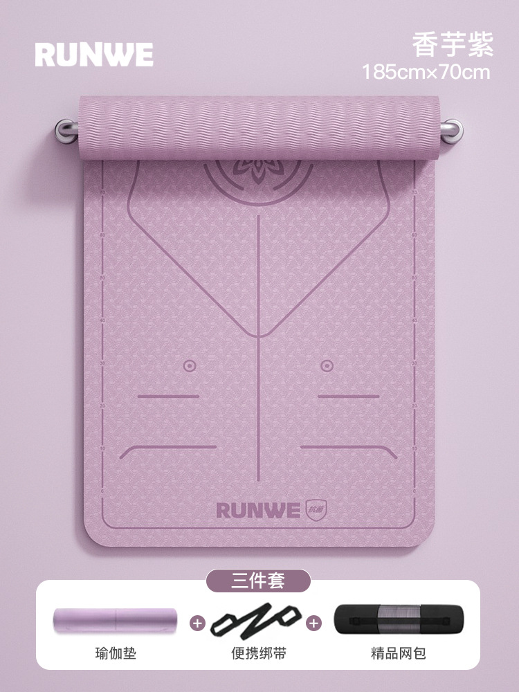 Комплект из трех предметов Taro Purple 185*70 см [коврик для йоги + сумка для хранения + ремни] утолщенный/нескользящий/