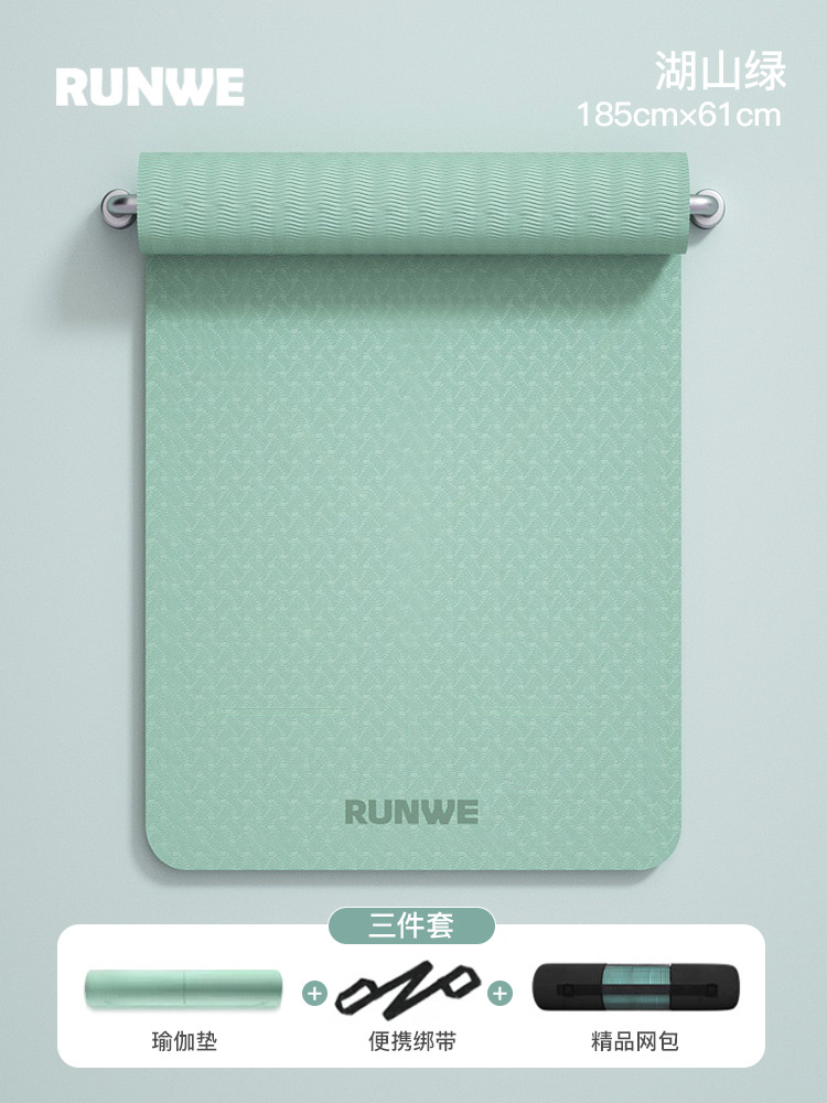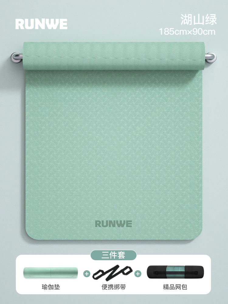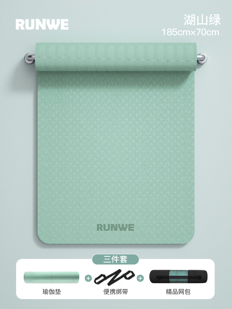 Набор из трех предметов Hushan Green 185*80 см [коврик для йоги + сумка для хранения + ремни] утолщенный/нескользящий/