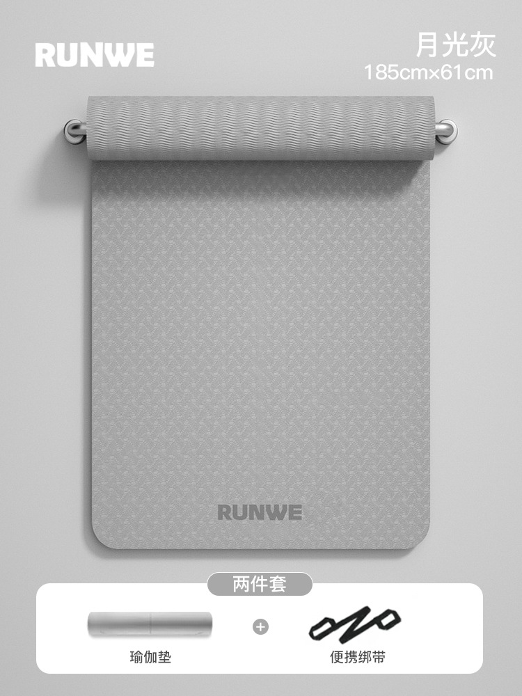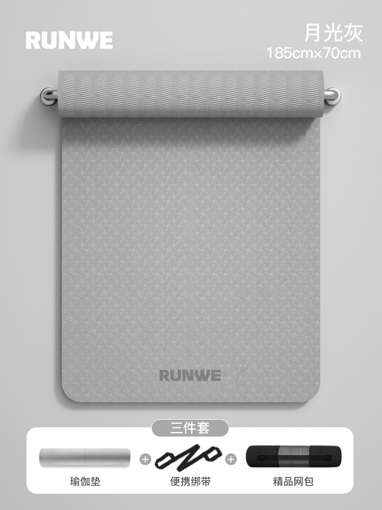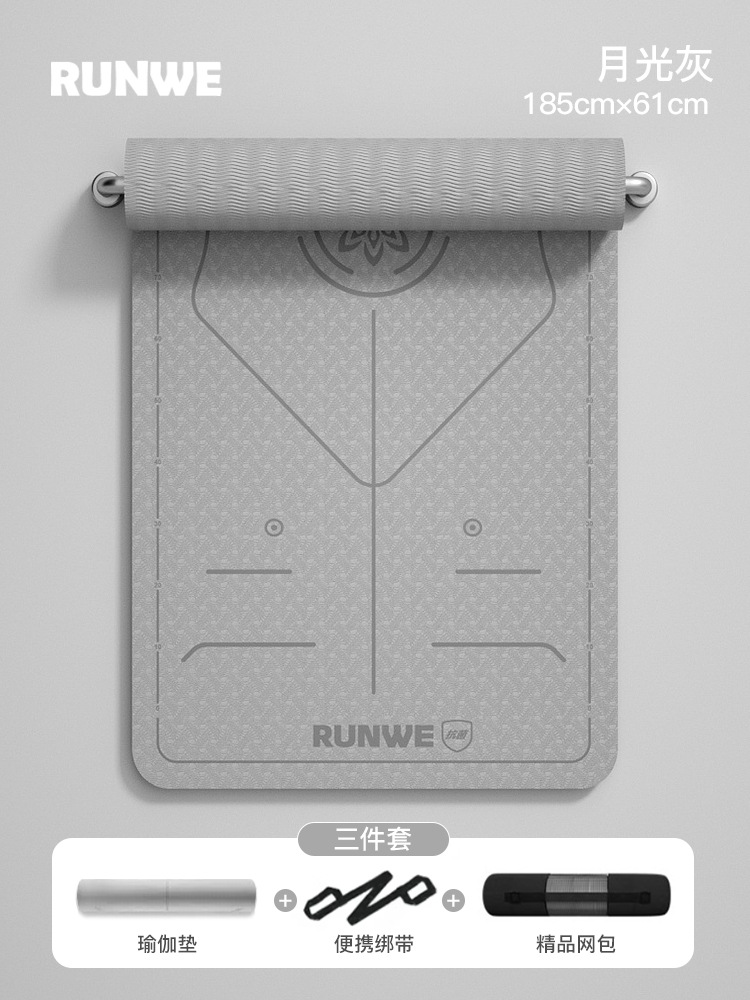 Серый серый цвет лунного света, 185*80 см, комплект из трех предметов с линией осанки [коврик для йоги + сумка для хранения + ремни] утолщенный/нескользящий/
