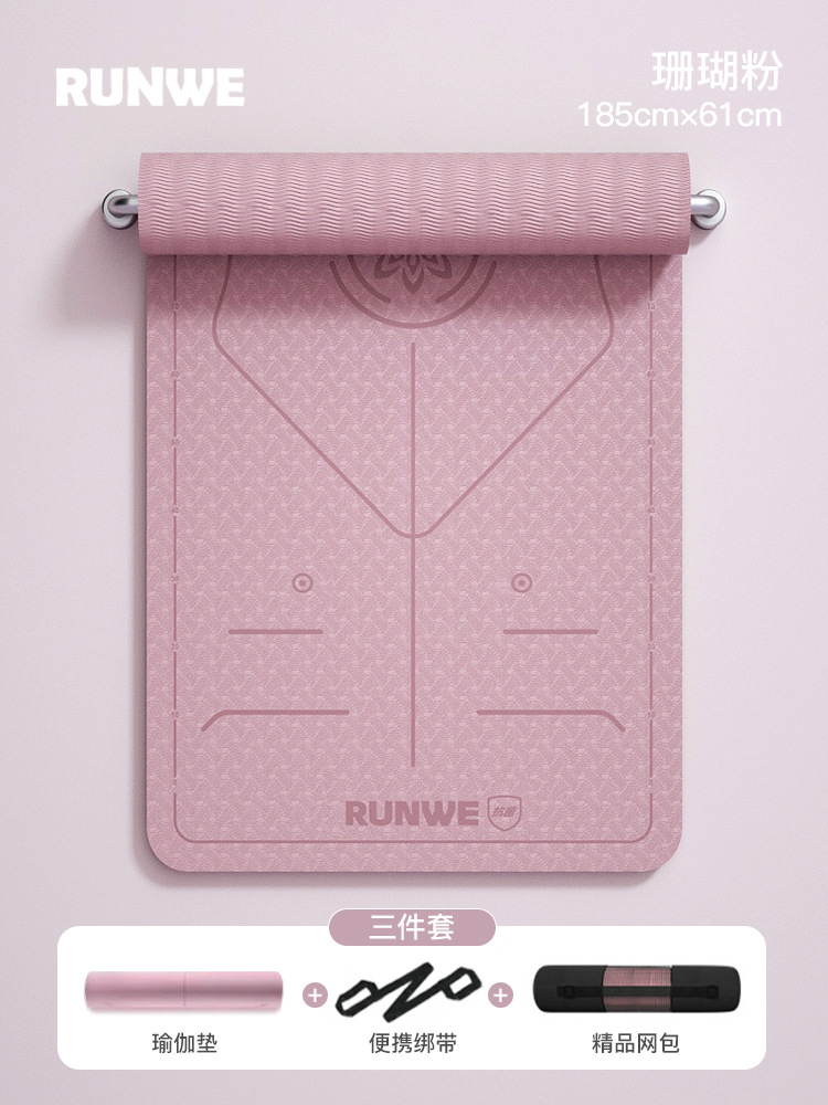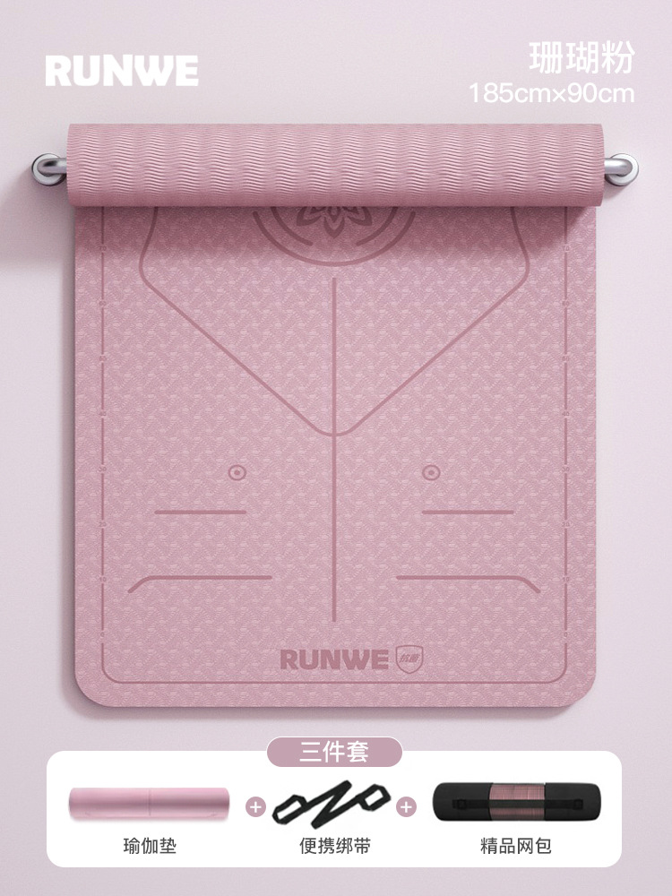 Коралловый розовый комплект из трех предметов с линией осанки 185*90 см [коврик для йоги + сумка для хранения + ремни] утолщенный/нескользящий/