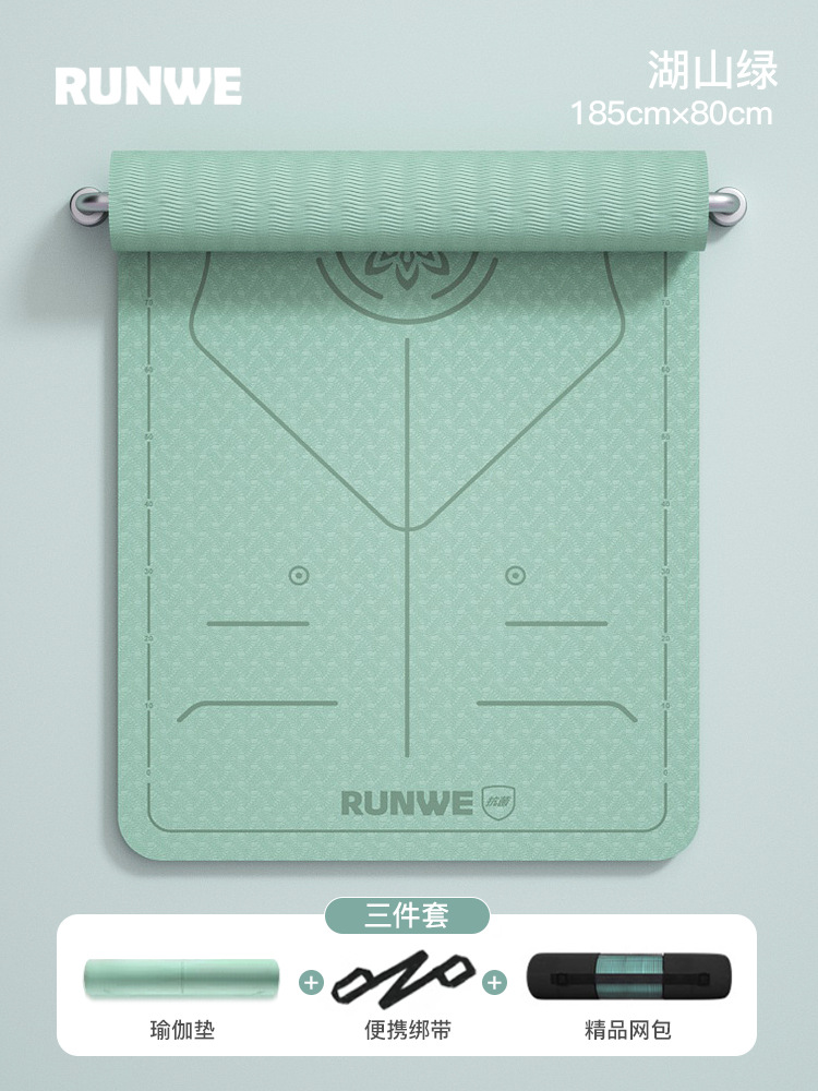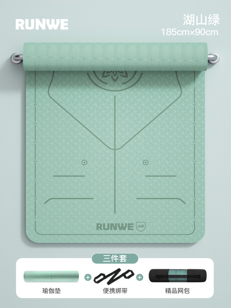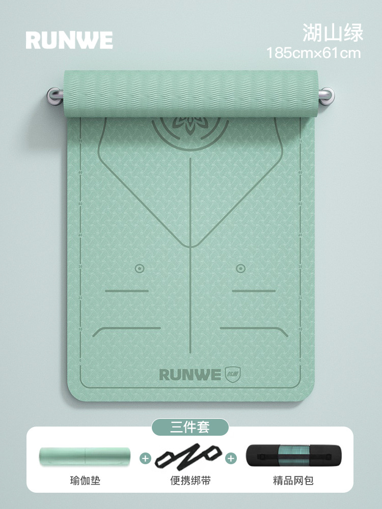 Hushan Green 185*70 см, комплект из трех предметов с линией осанки [коврик для йоги + сумка для хранения + ремни] утолщенный/нескользящий/