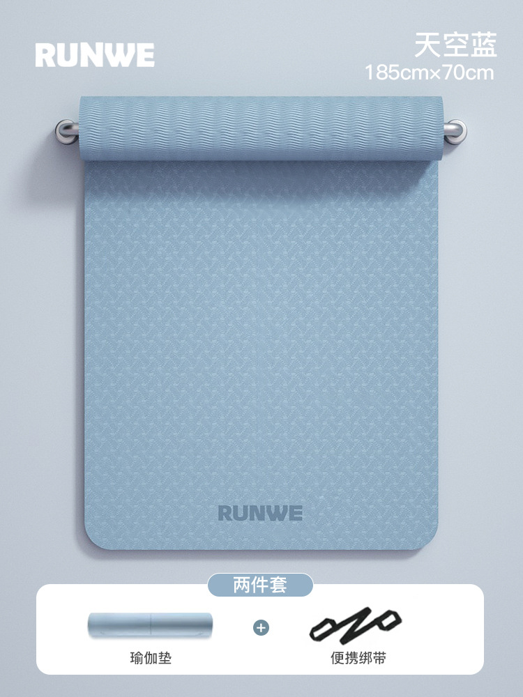 Небесно-голубой комплект из двух предметов 185*70 см [коврик для йоги + ремень] утолщенный/нескользящий/