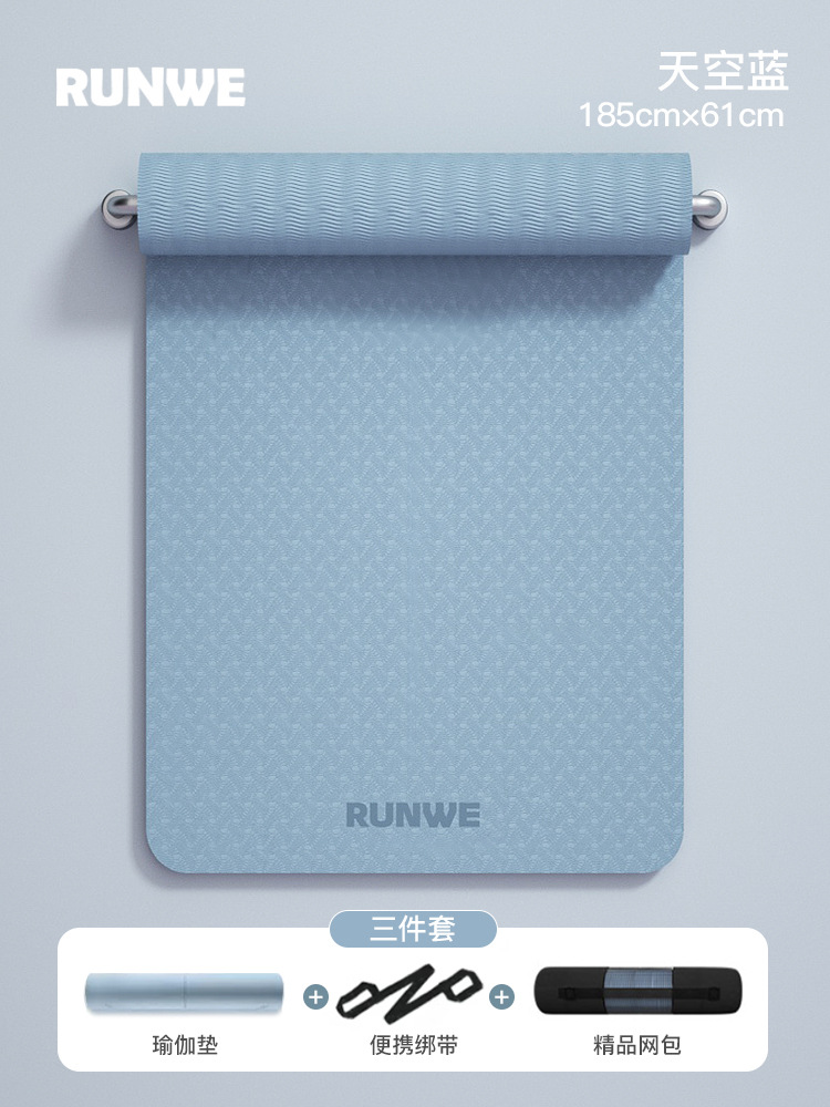 Небесно-голубой комплект из трех предметов 185*90 см [коврик для йоги + сумка для хранения + ремни] утолщенный/нескользящий/