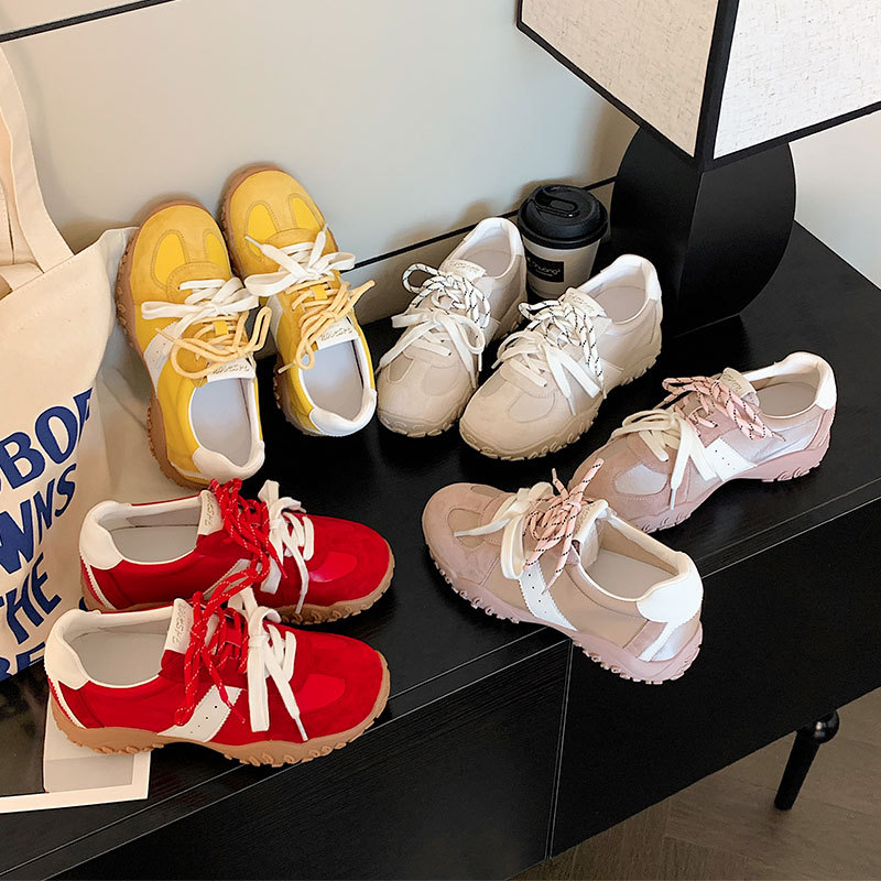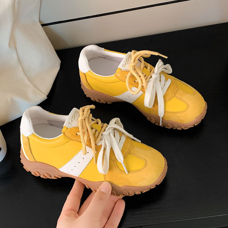 Главная страница > Увеличение в 7 см ~ Кожаная немецкая обувь женская 2025 новая шнуровая спортивная обувь папы с толстой подошвой желтая обувь A-Gump