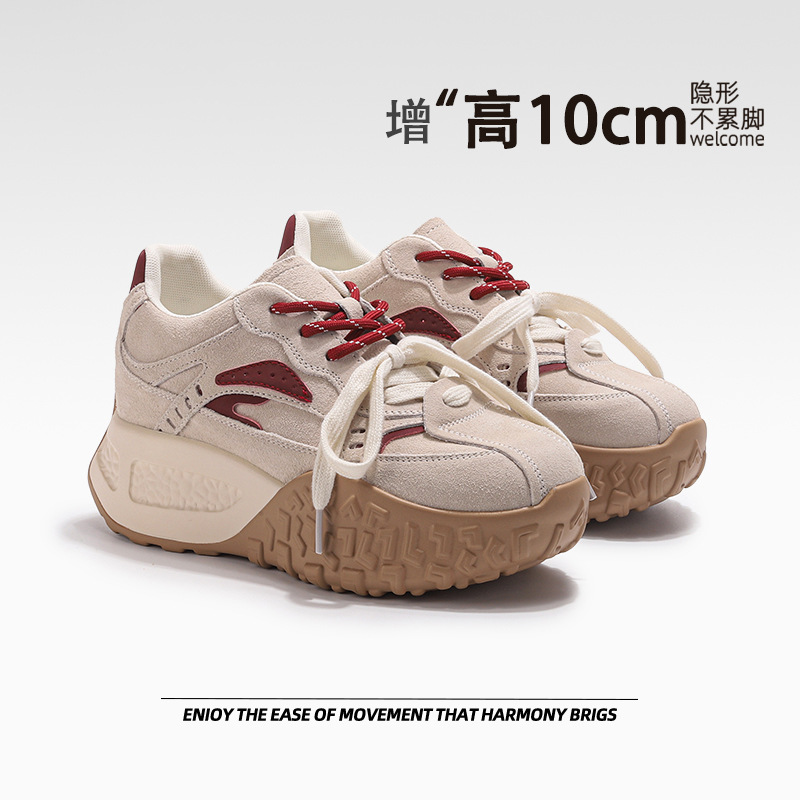 Маленькая мужская обувь с толстым подошвой выше, моральная обувь женская весна 2025 новый ретро спорт повседневная обувь
