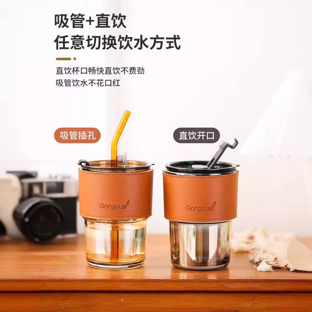 Сетка красная бамбуковая чашка с соломкой стеклянная чашка сока чашка чая с молоком чашка кофе с высоким содержанием воды чашка с крышкой стеклянная чашка