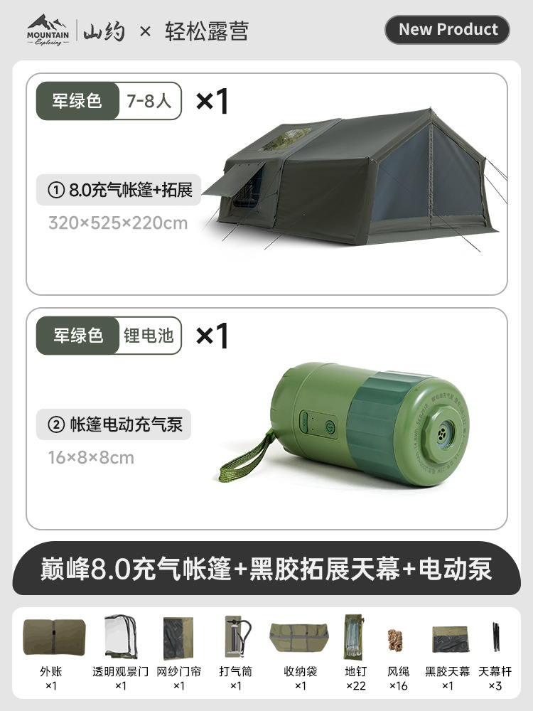 Пик·Хлопок【8㎡】Основная палатка + дверь из ТПУ + сетчатая занавеска + ручной насос