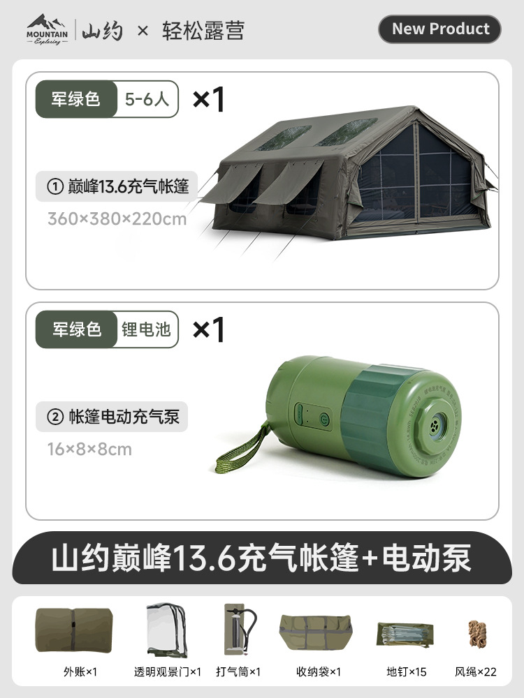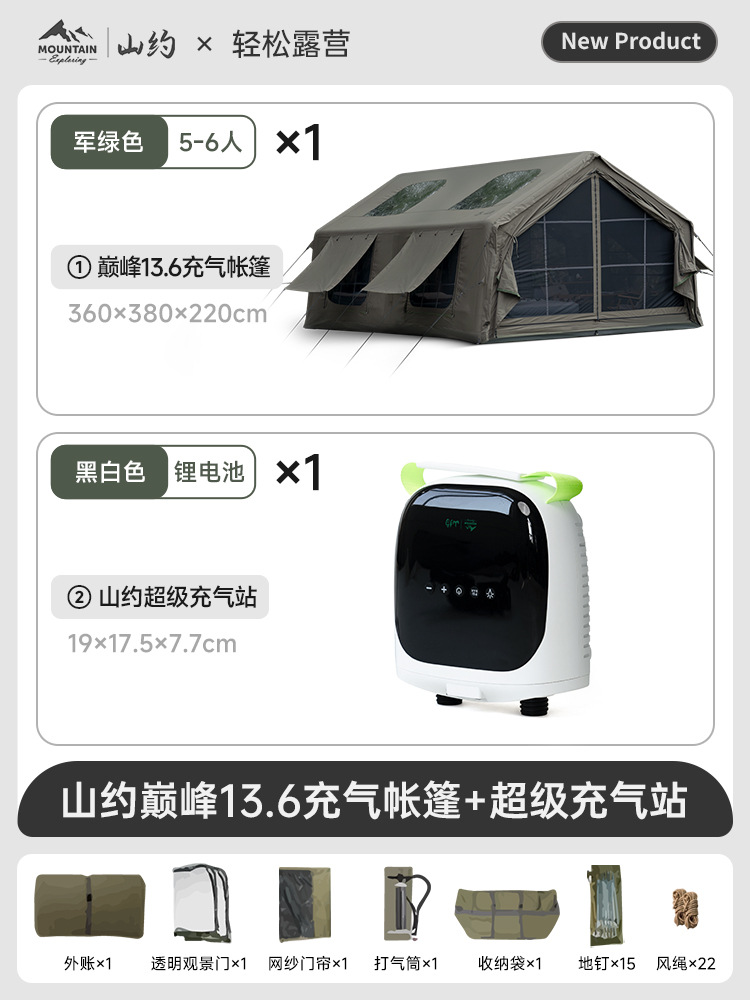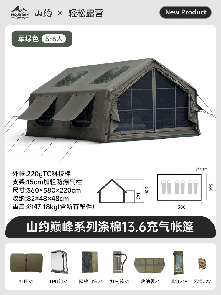 Пик·Хлопок【13,6㎡】Основная палатка + дверь из ТПУ + сетчатая занавеска + супернадувная станция