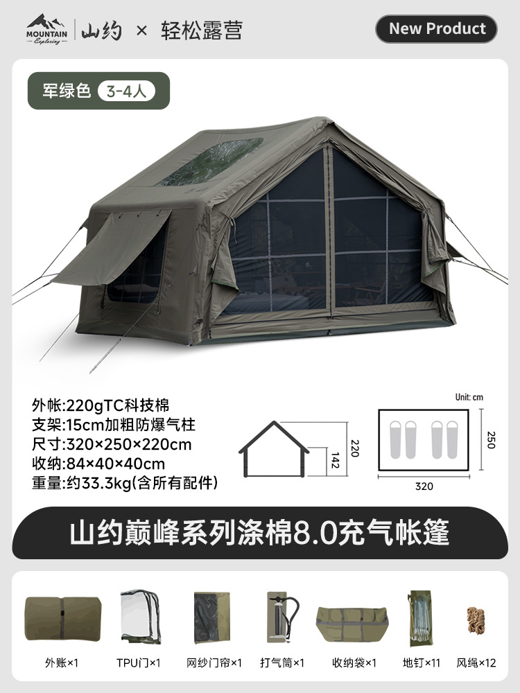 Пик·Хлопок【8㎡】Основная палатка + дверь из ТПУ + сетчатая занавеска + супернадувная станция