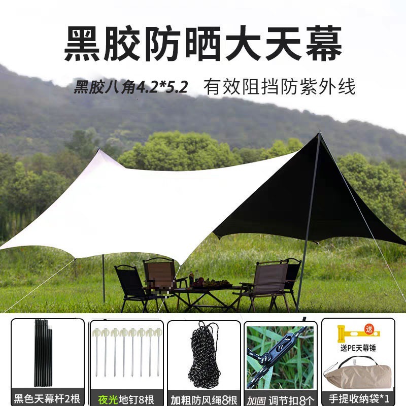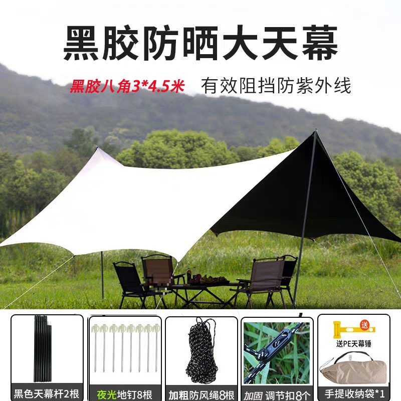 Большой тент для кемпинга на открытом воздухе, пикника, пляжного зонта, защиты от солнца, утолщенного черного винила, портативного укрытия из ткани Оксфорд.