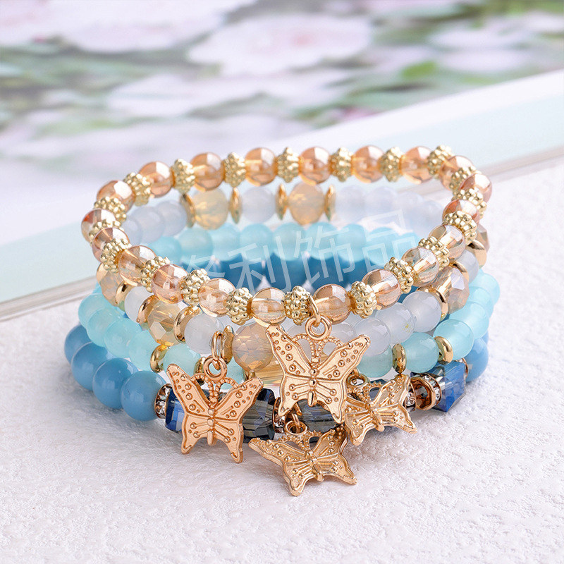 Главная страница > Европейский и американский трансграничный хит продаж, модный стильный богемный стиль, кулон-бабочка, многослойный браслет из эластичной веревки