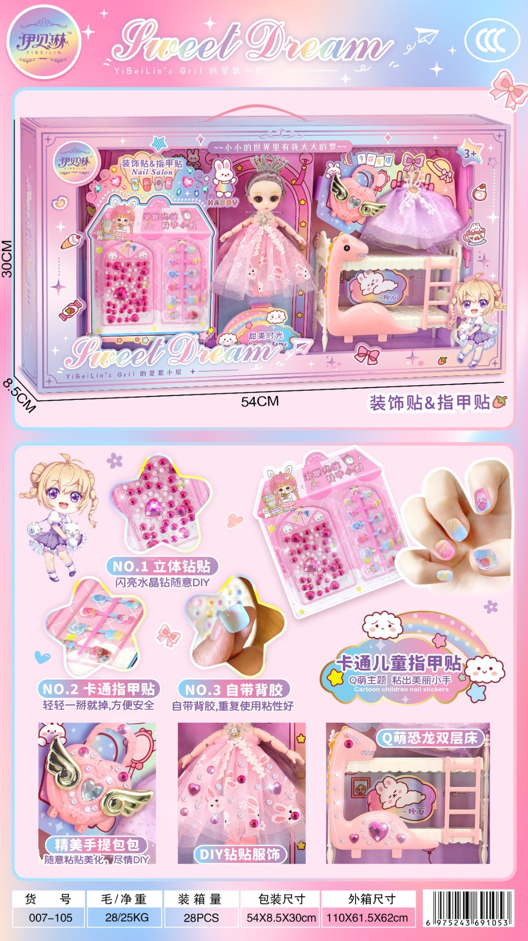 Набор наклеек для ногтей с мультяшными детскими куклами 007-105