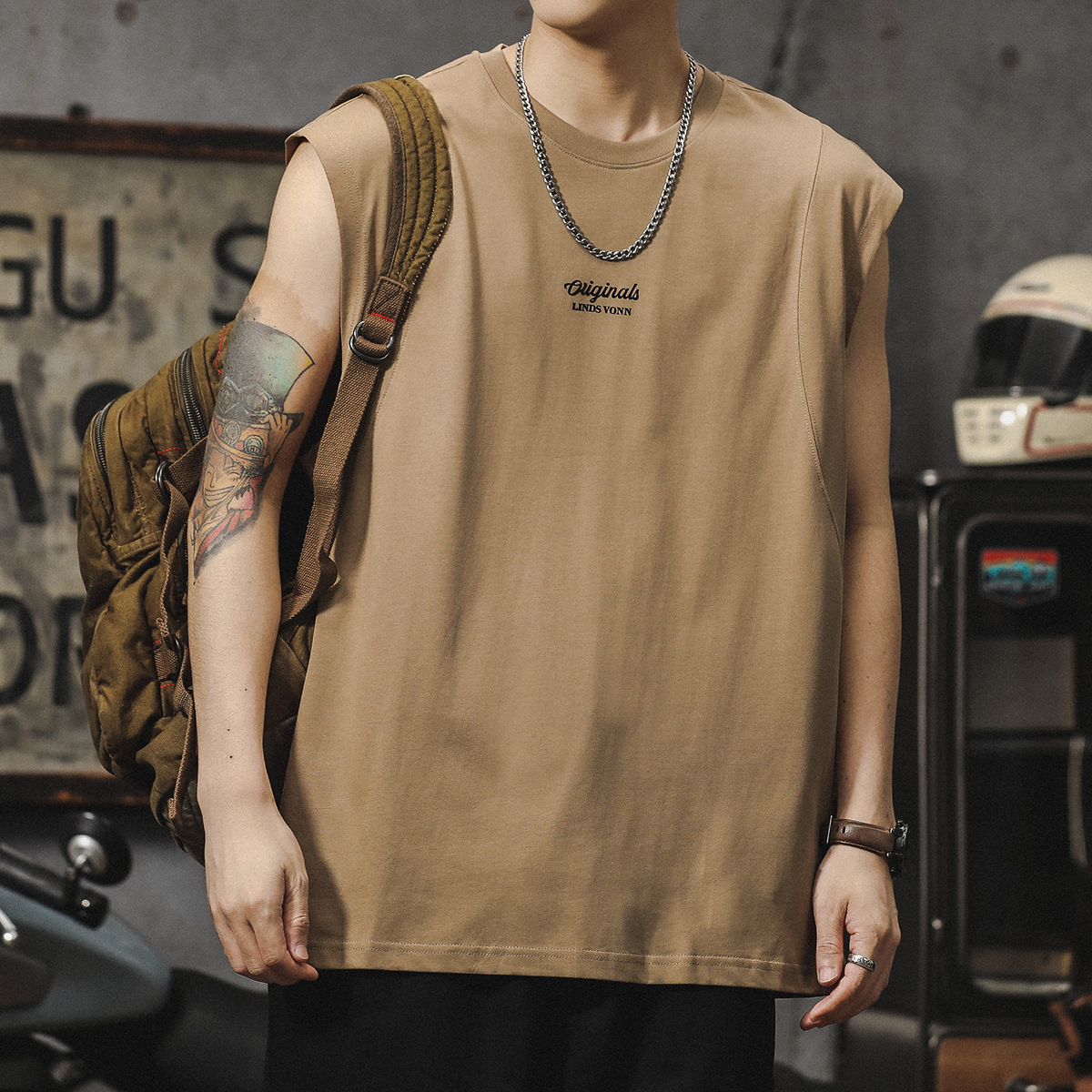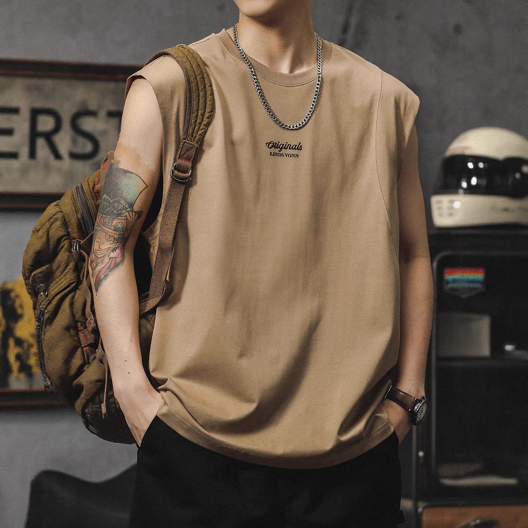 Главная страница > 250 г тяжелый спортивный жилет мужской летний модный верхняя одежда хлопковый жилет американский свободный футболка без рукавов майка