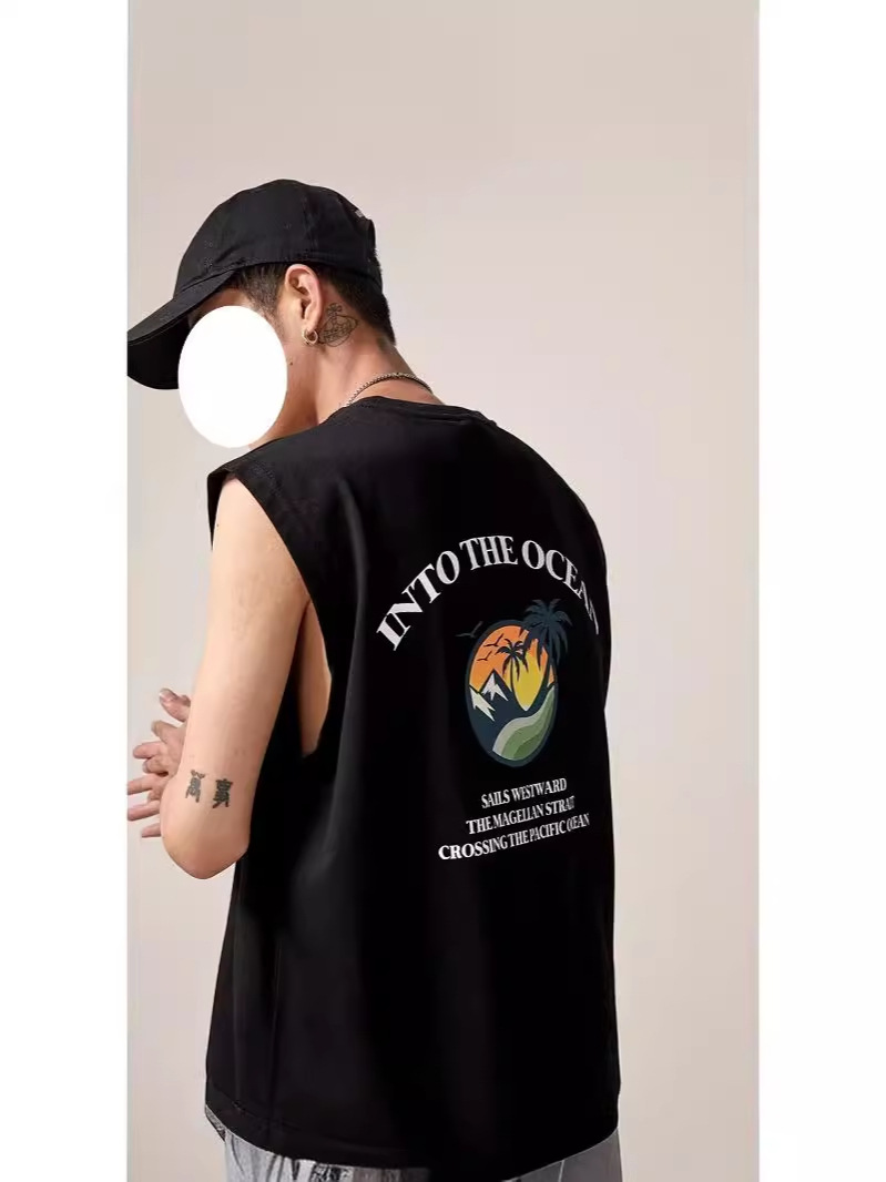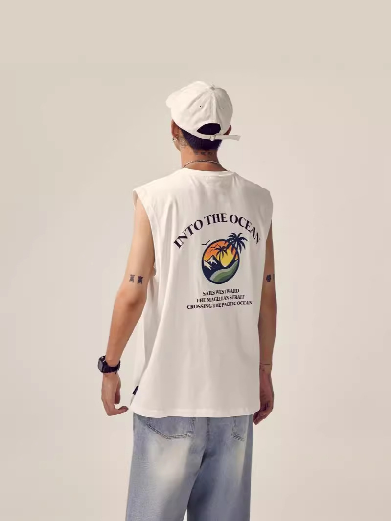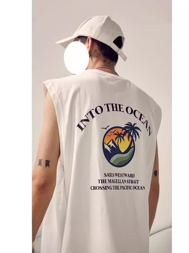 Японский свежий американский летний жилет мужской прилив свободный баскетбол спортивный фитнес-бар футболка без рукавов с принтом
