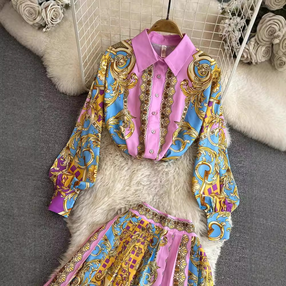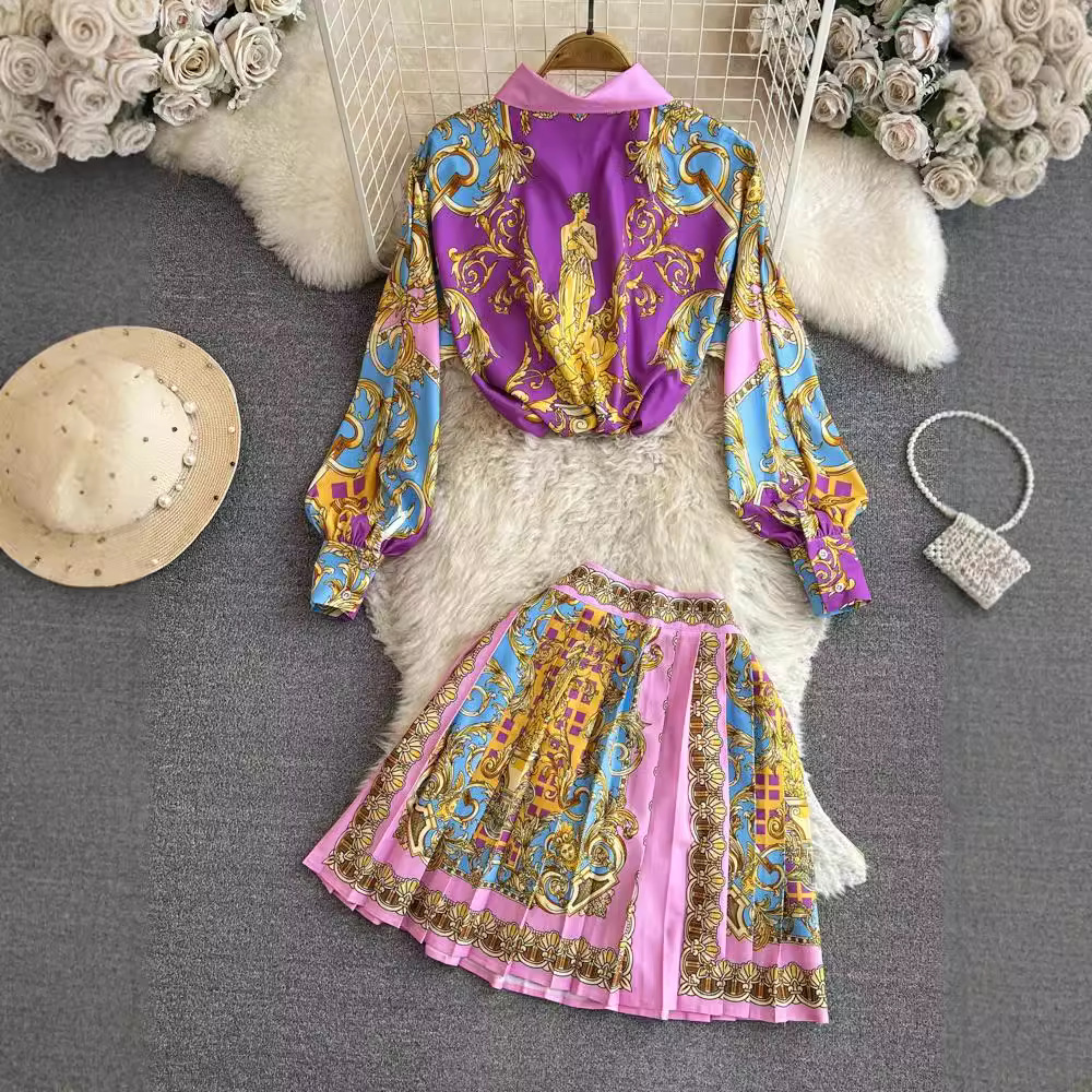 Главная страница > Модный костюм женская корейская версия рубашки с длинными рукавами с длинными рукавами с высокой талией плиссированной юбкой из двух частей