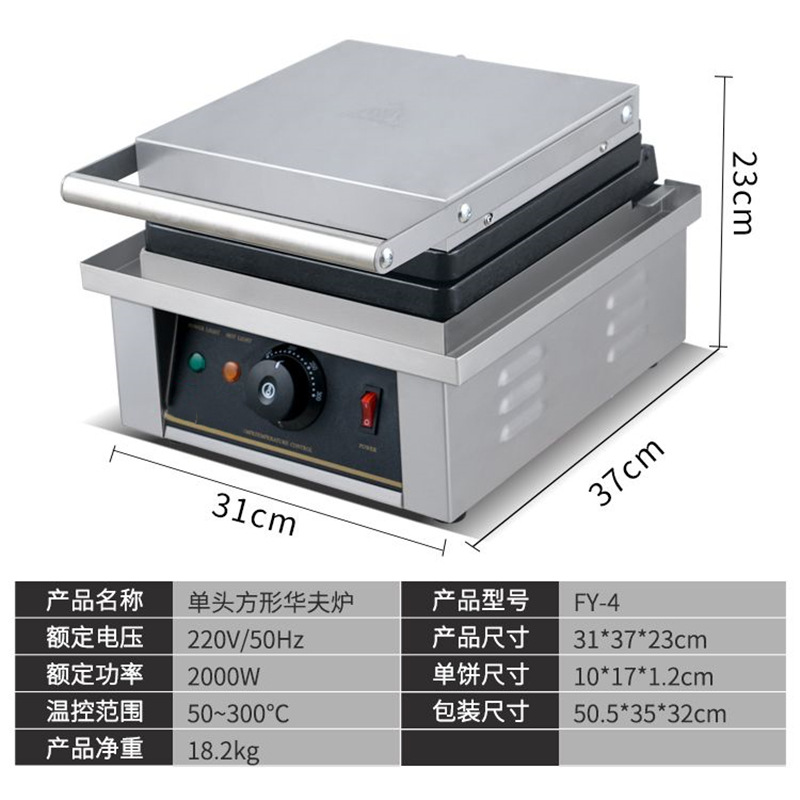 Электрическая вафельная машина Jieyi Кексовая печь Прямоугольная двухквадратная вафельная печь Коммерческая машина для выпечки Кексовая машина FY-4