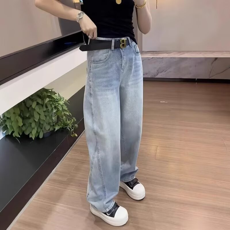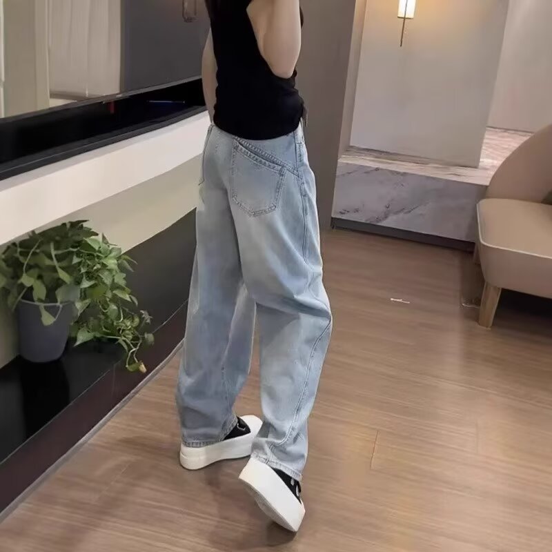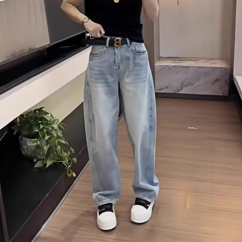Ретро джинсы ятаган большого размера женский весенний толстый мм грушевидное тело свободная высокая талия тонкая широкая нога прямые брюки