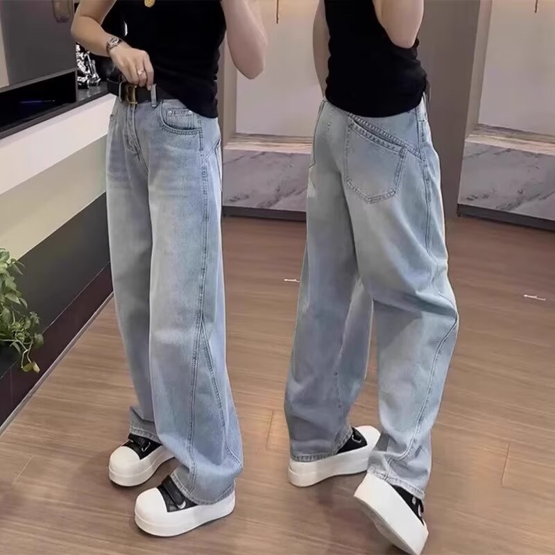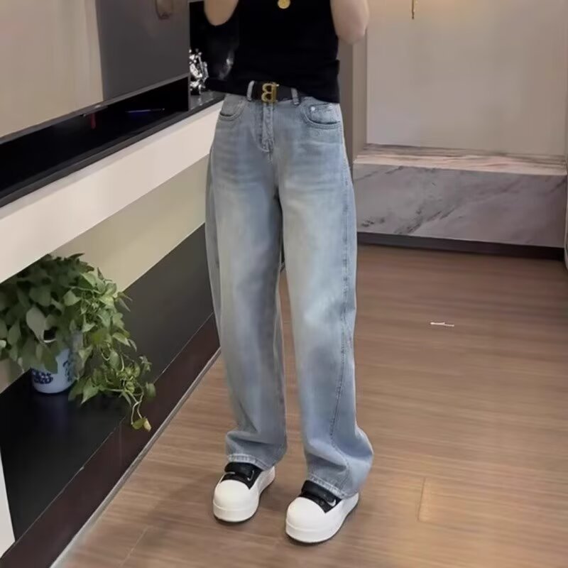 Главная страница > Ретро джинсы ятаган большого размера женский весенний толстый мм грушевидное тело свободная высокая талия тонкая широкая нога прямые брюки