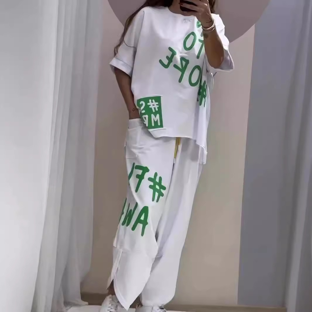 Главная страница > Независимая станция Amazon 2025, INS, хит продаж, повседневный спортивный женский костюм с буквенным принтом, трансграничная европейская и американская одежда