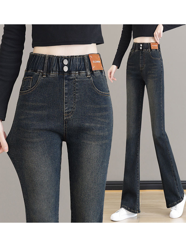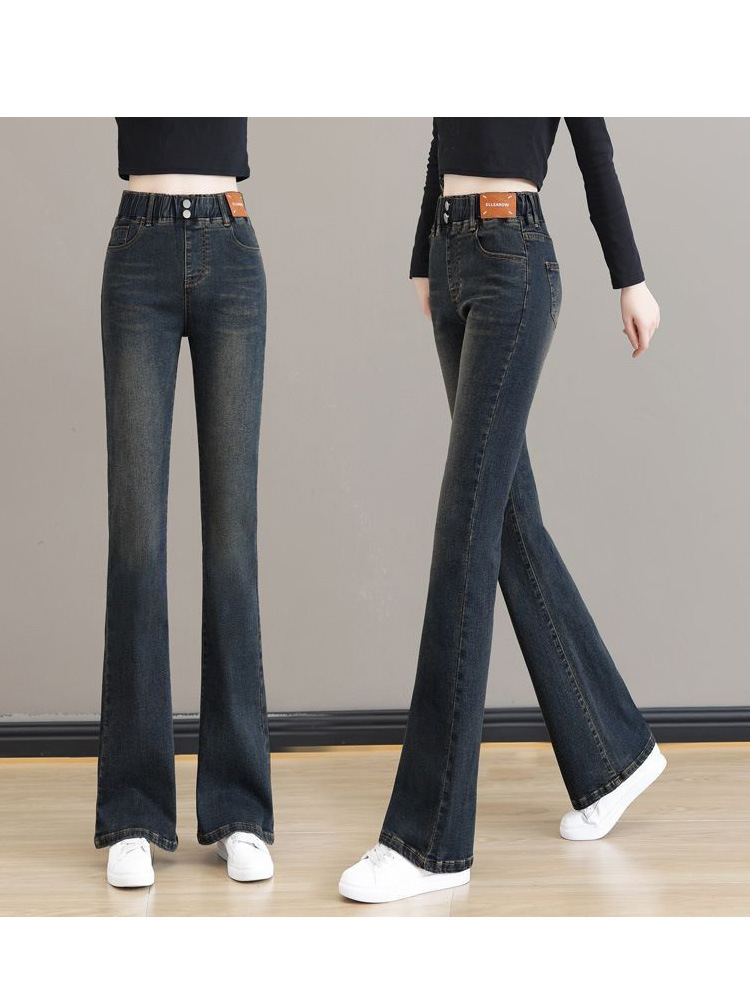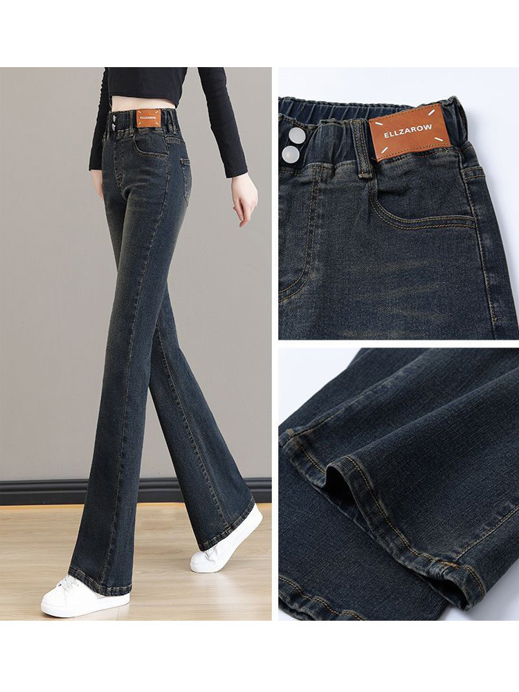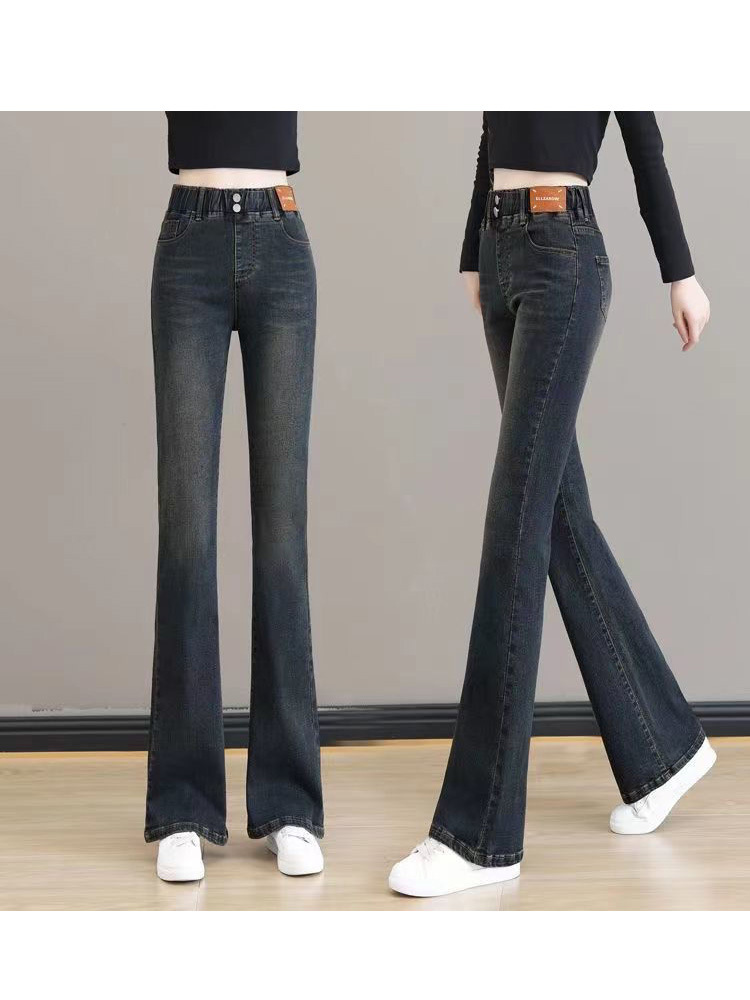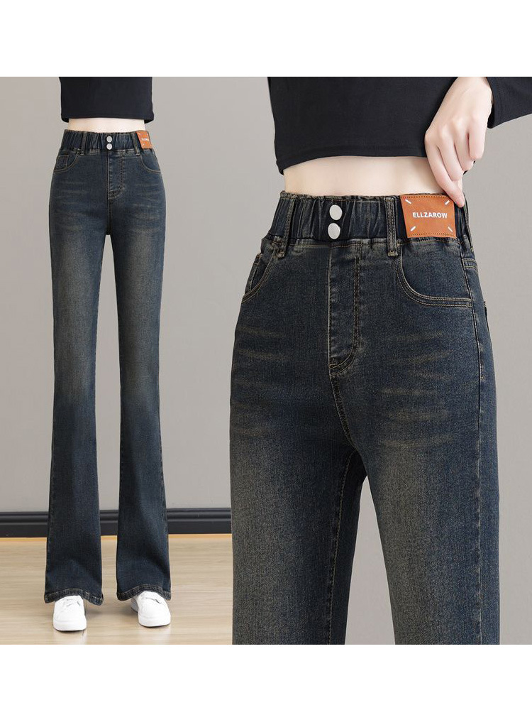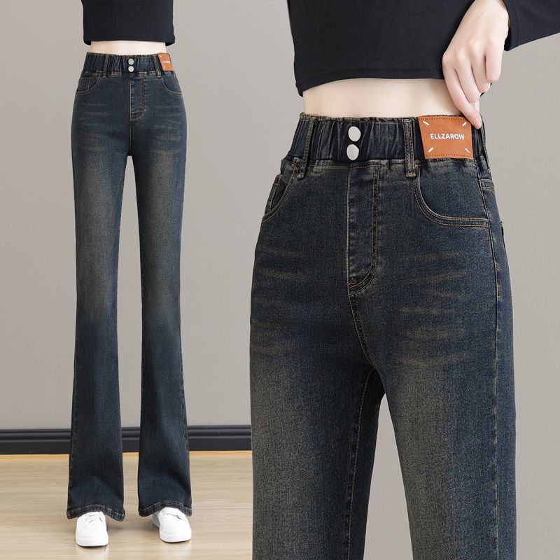 Главная страница > Расклешенные джинсы с эластичной резинкой на талии для женщин, большие размеры, весна 2025, утягивающие брюки с высокой талией