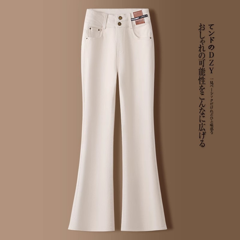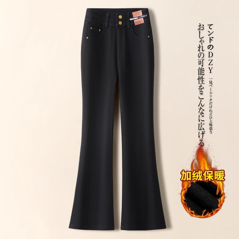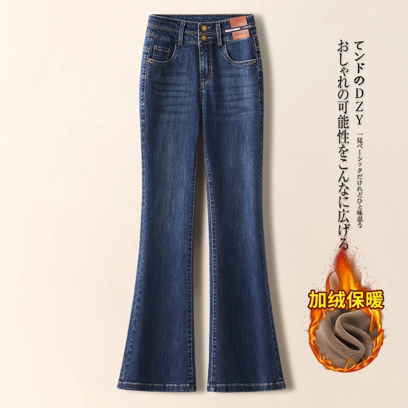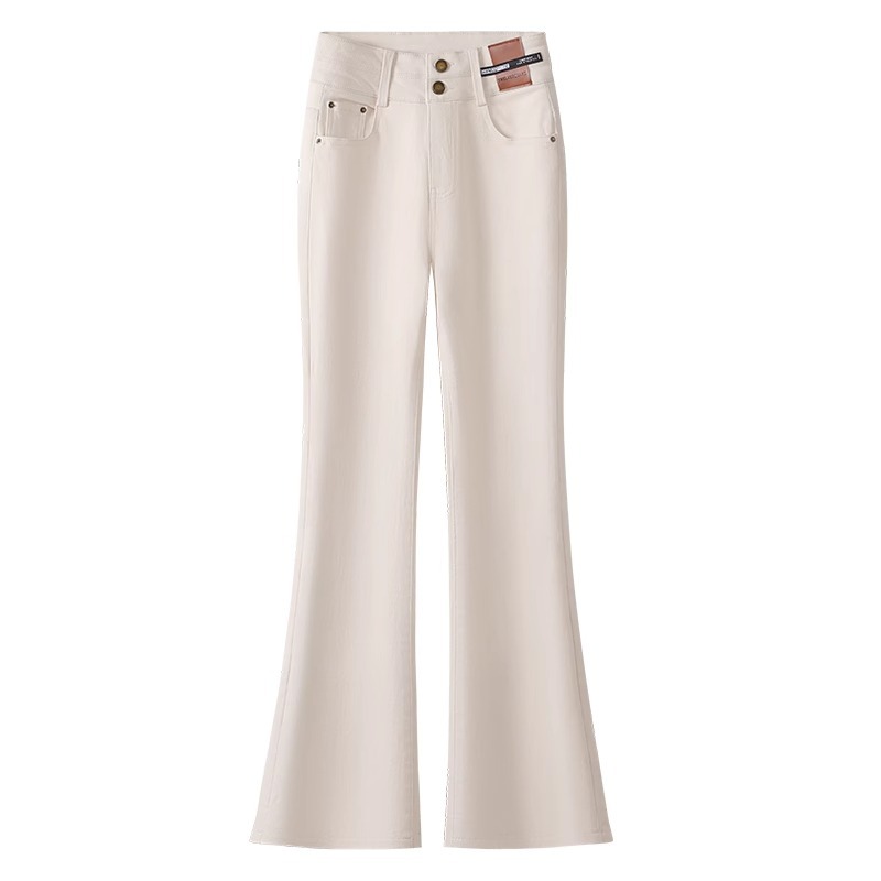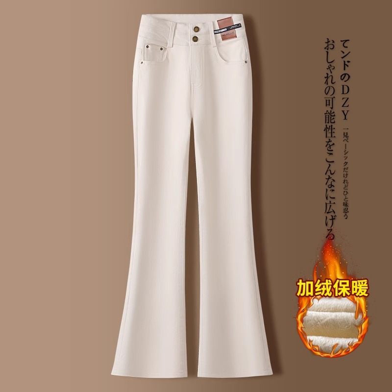 Главная страница > Женские расклешенные джинсы цвета «слоновая кость» 2025 года, новинка осени и зимы, утепленные флисом, укороченные брюки-клеш в стиле ретро
