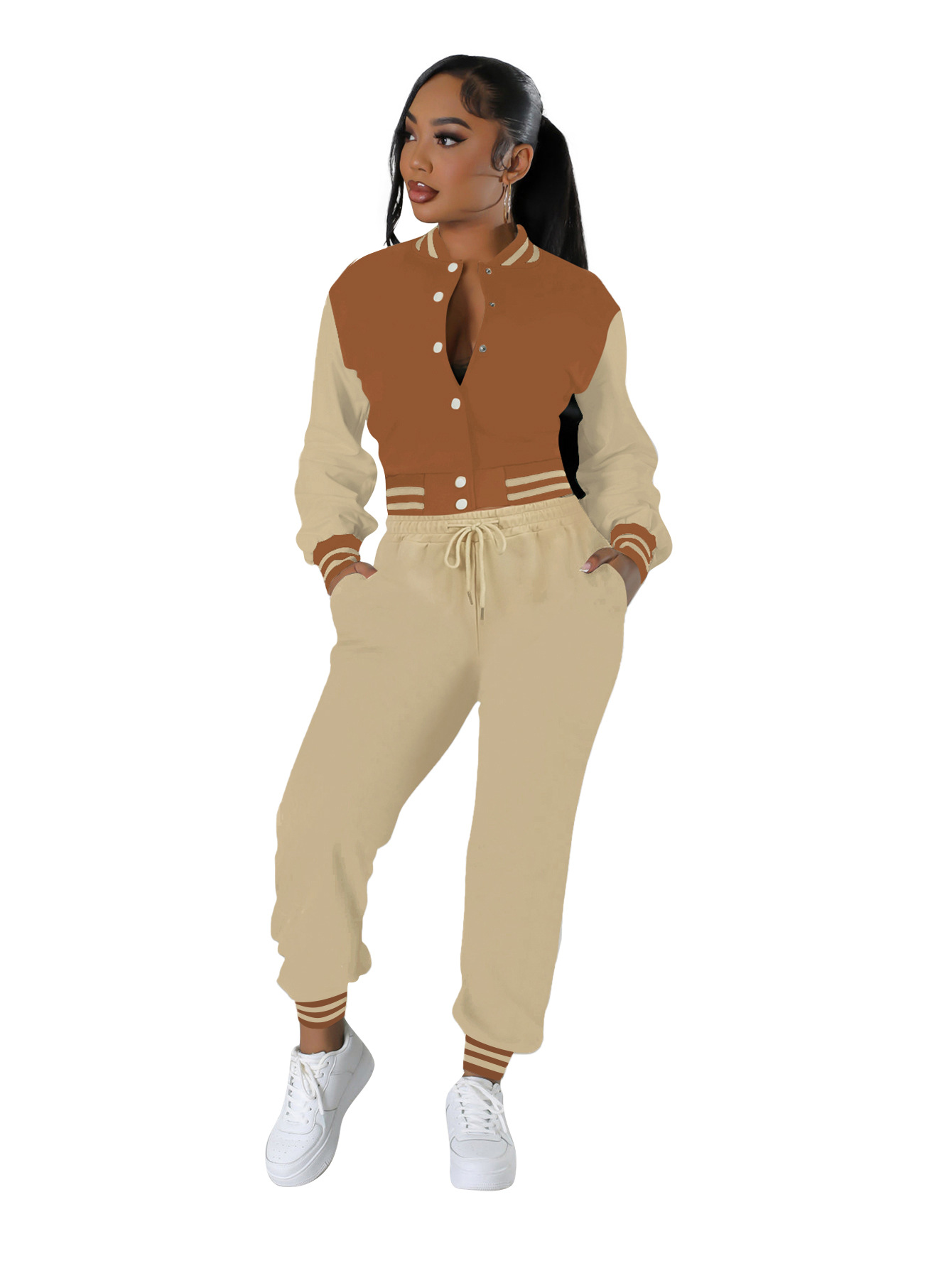 F6007 Европейская и американская женская одежда для трансграничных продаж, новая модная бейсбольная форма Amazon, комплект из двух предметов с однобортным кроем.