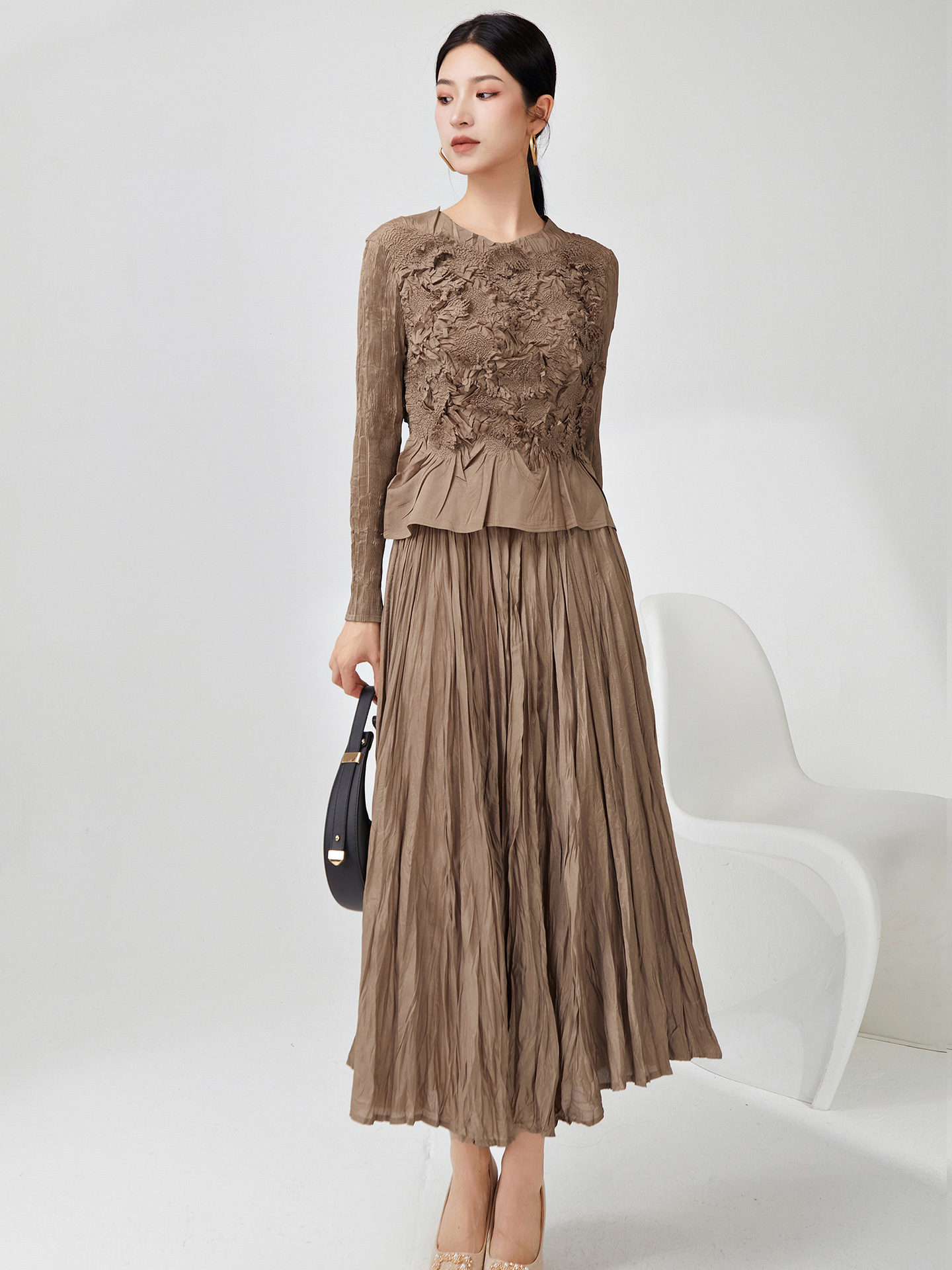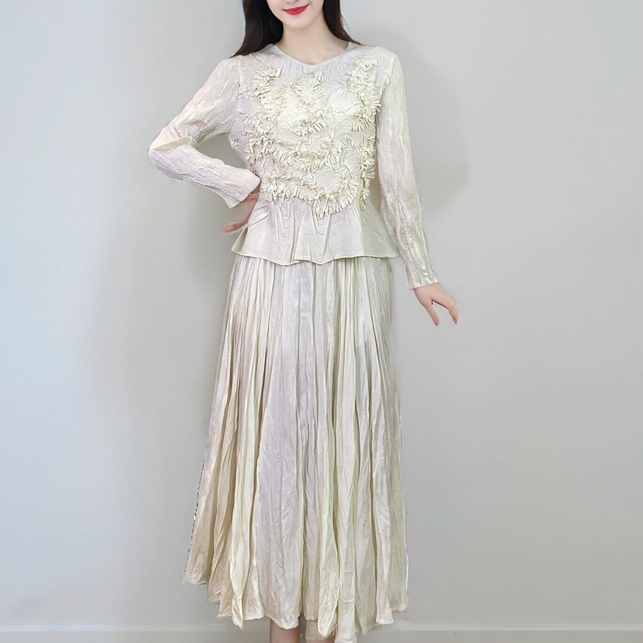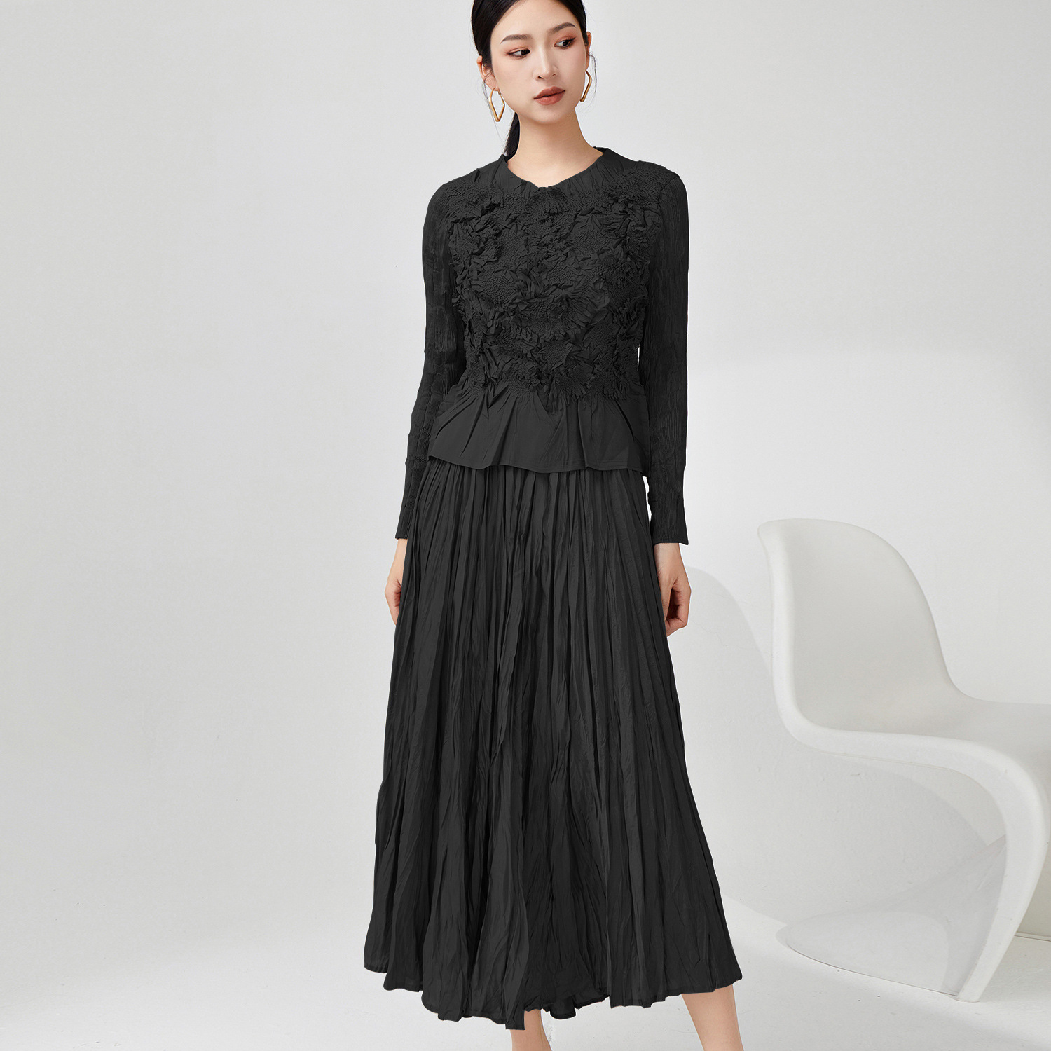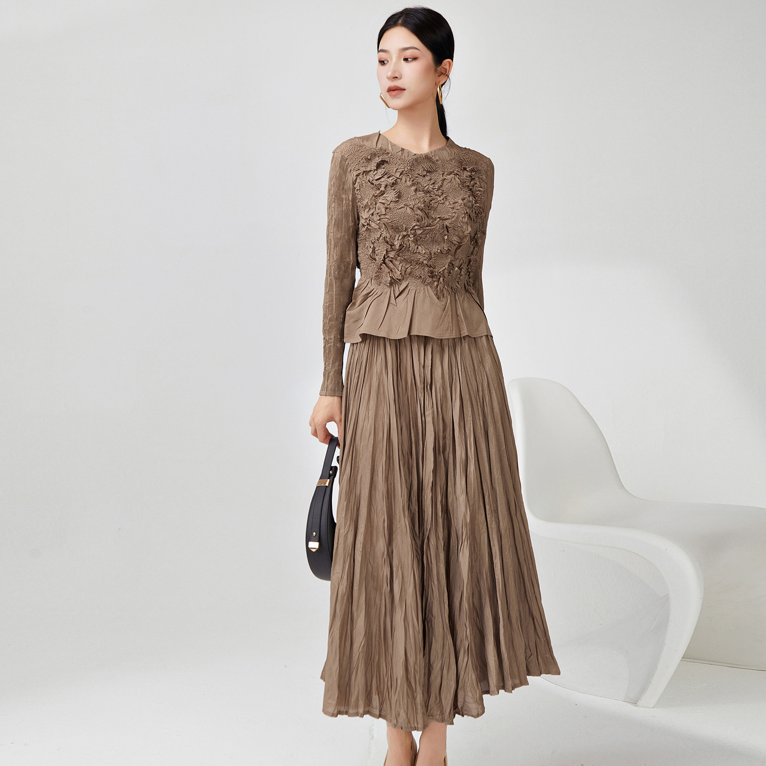 Главная страница > Модный комплект складки для женской одежды высокого уровня повседневная одежда с длинными рукавами топ юбка с двумя тонкими наборами