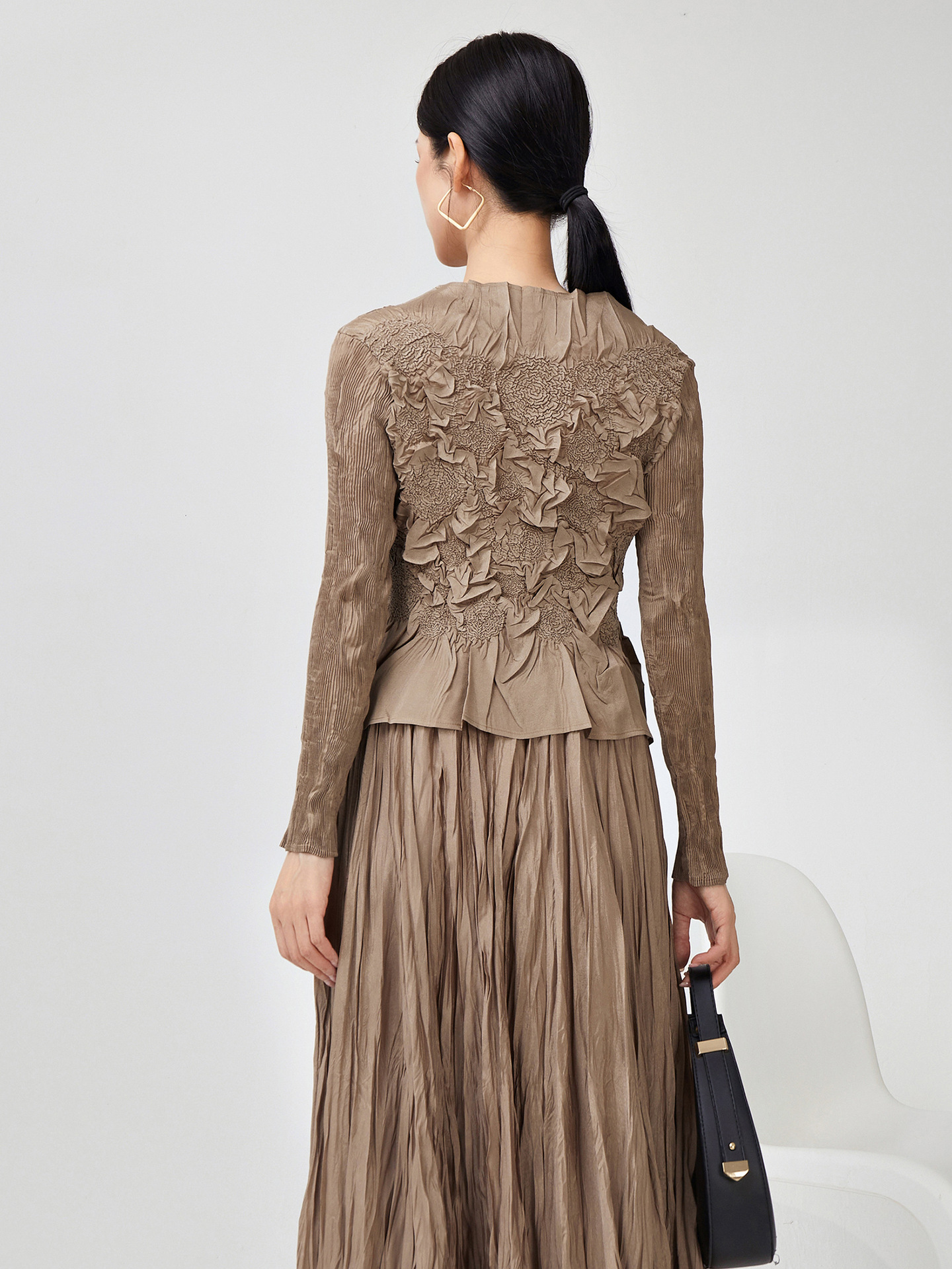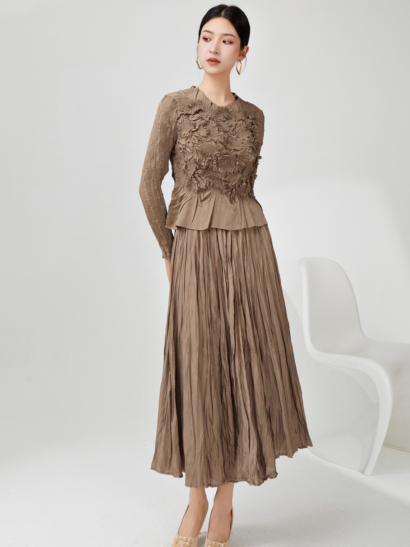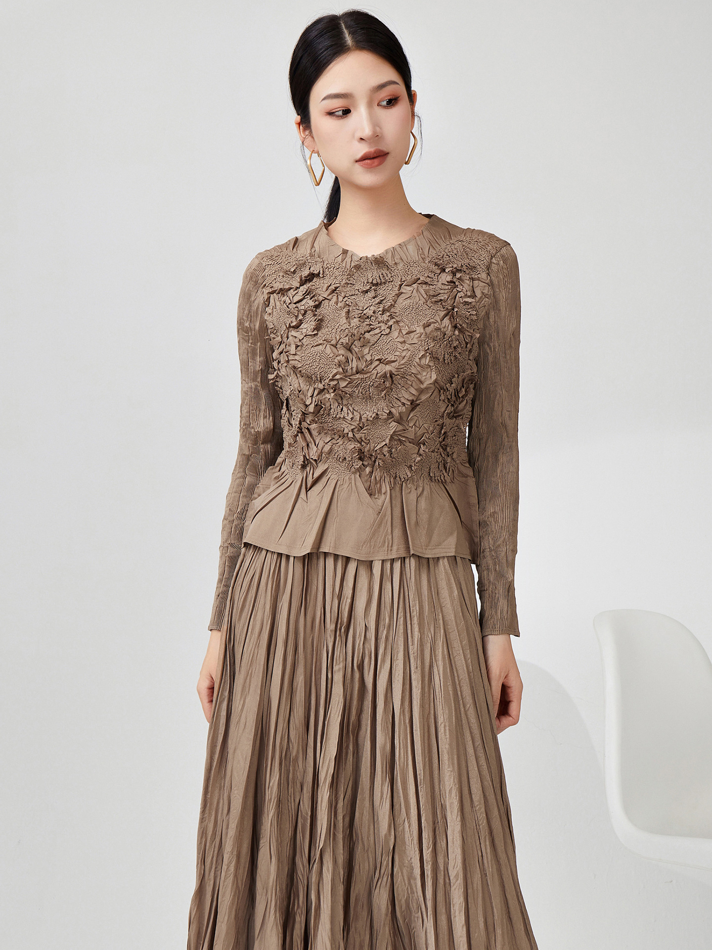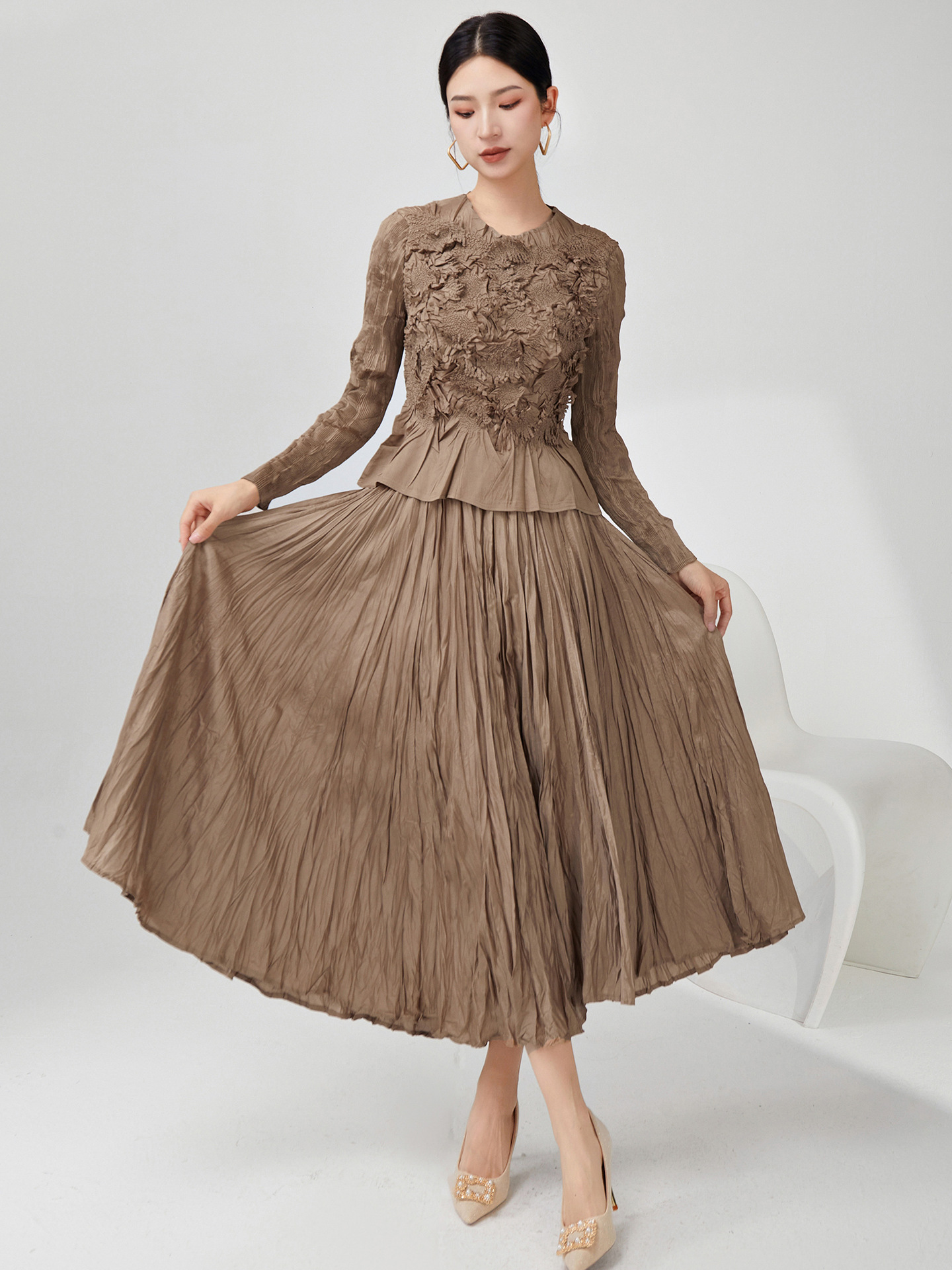 Главная страница > Модный комплект складки для женской одежды высокого уровня повседневная одежда с длинными рукавами топ юбка с двумя тонкими наборами