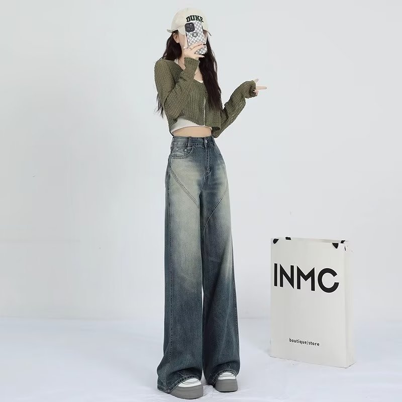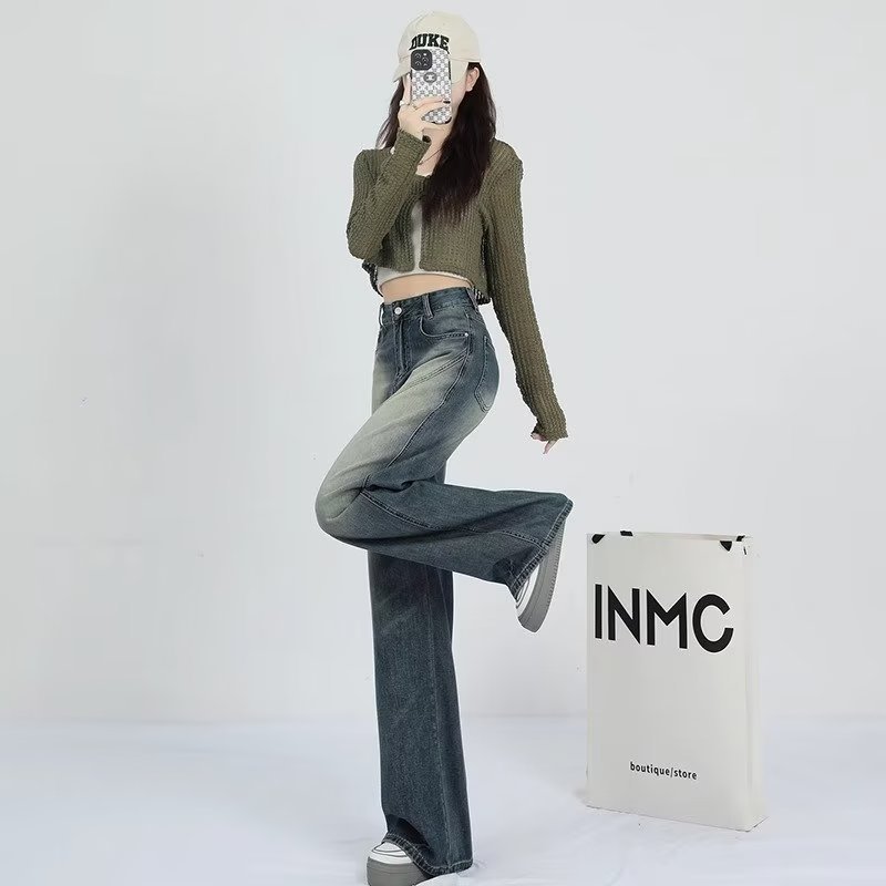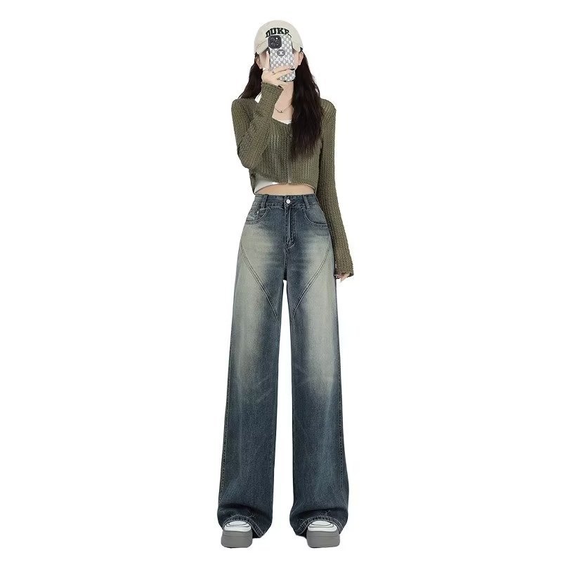 Главная страница > Ретро синие прямые джинсы женский ранняя осень 2024 новая высокая талия тонкая, свободная нишевая широкая нога